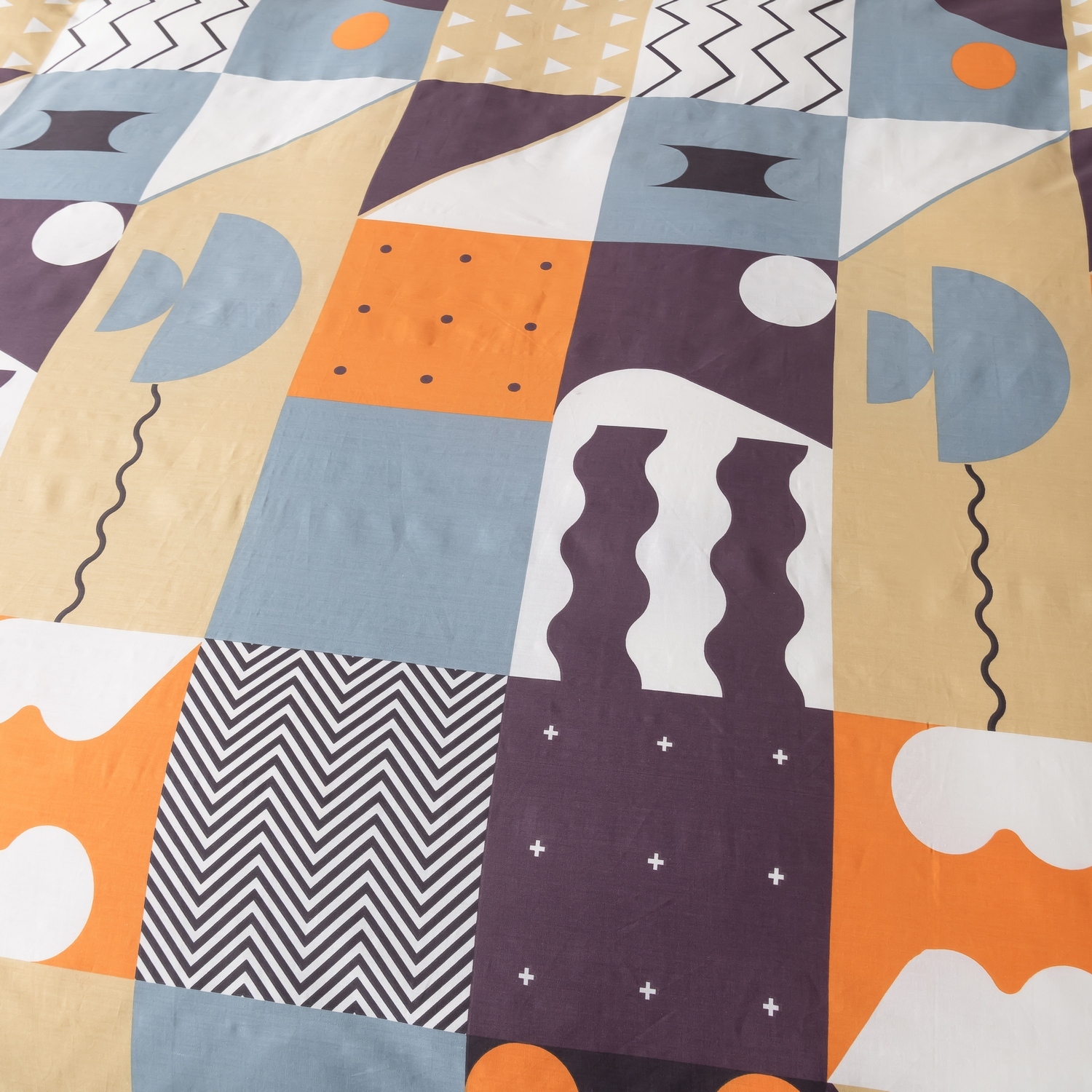 Ткань компаньон: Наволочки с разных сторон разной расцветки, пододеяльник с разных сторон разного цвета, простыня такого же цвета, как низ пододеяльника.