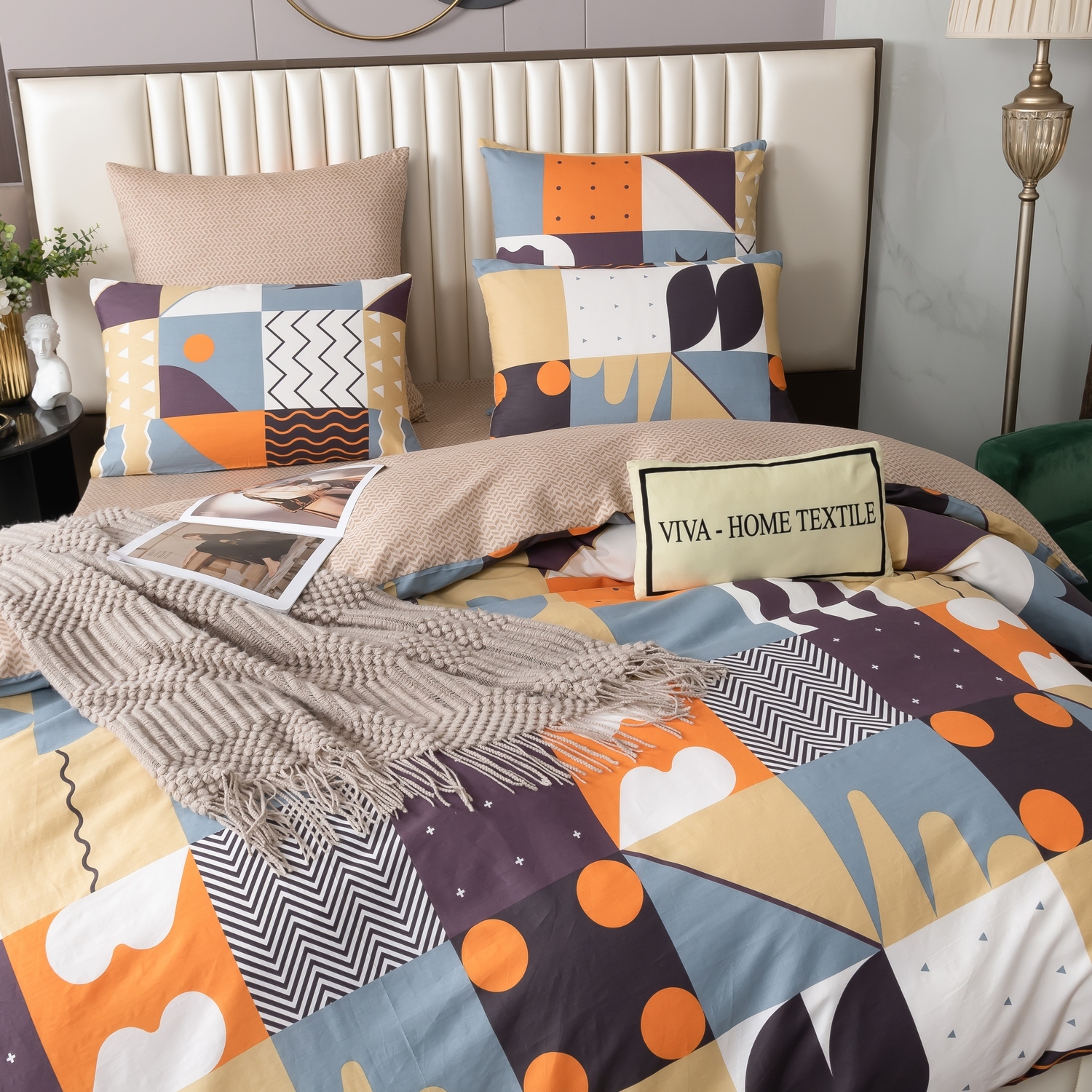 Ткань компаньон: Наволочки с разных сторон разной расцветки, пододеяльник с разных сторон разного цвета, простыня такого же цвета, как низ пододеяльника.