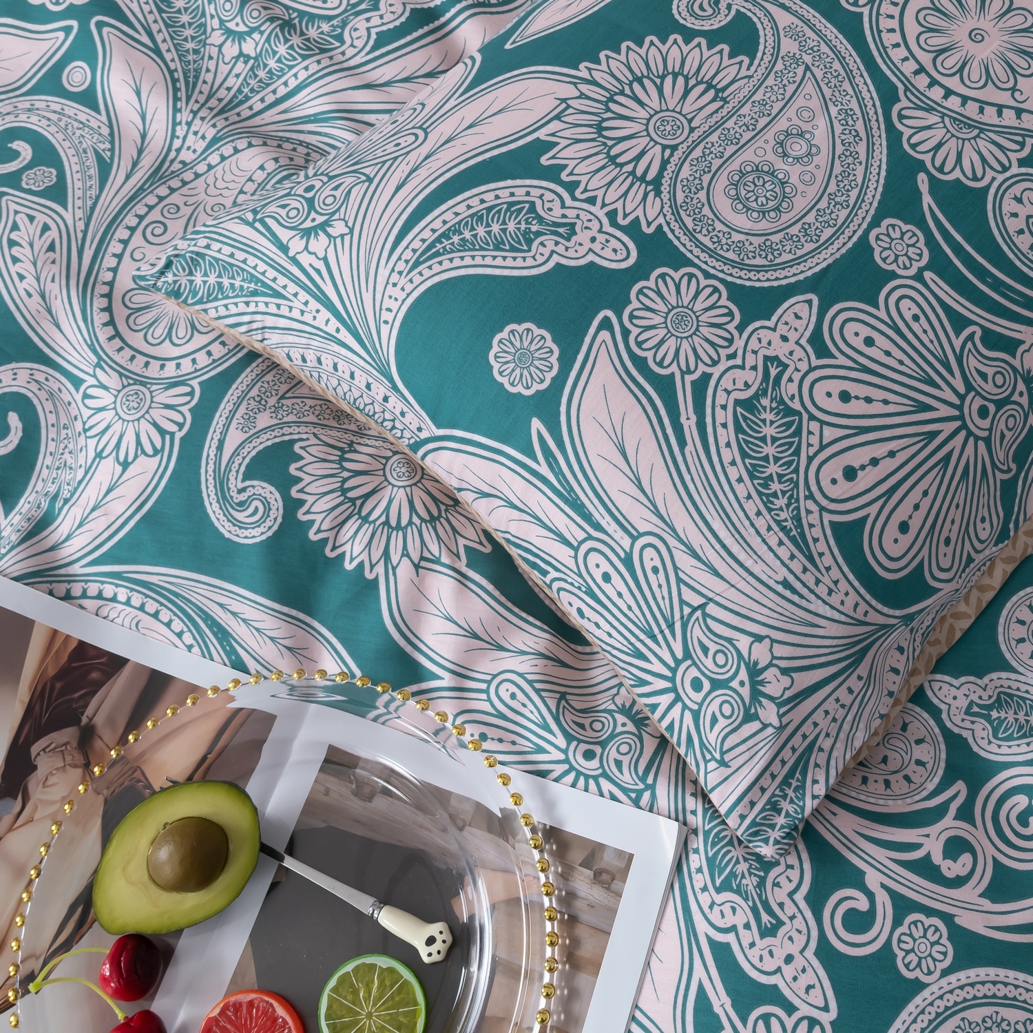 Ткань компаньон: Наволочки с разных сторон разной расцветки, пододеяльник с разных сторон разного цвета, простыня такого же цвета, как низ пододеяльника.