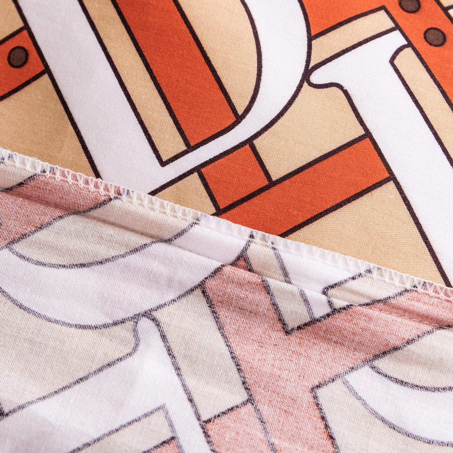 Ткань компаньон: Наволочки с разных сторон разной расцветки, пододеяльник с разных сторон разного цвета, простыня такого же цвета, как низ пододеяльника.