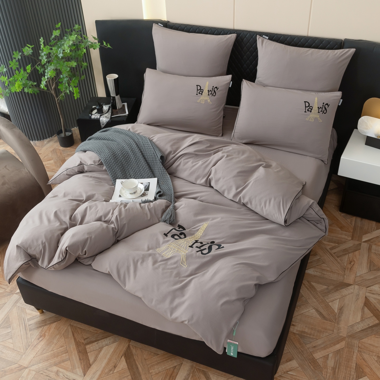 Элегантная вышивка с изображением Эйфелевой башни и надписью Paris придает дизайну неповторимый шарм, а изящный кант по периметру деликатно подчеркивает утонченность и изысканность каждого комплекта.