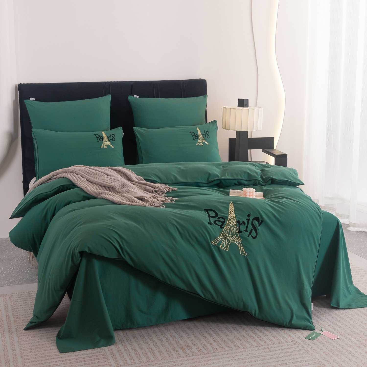 Элегантная вышивка с изображением Эйфелевой башни и надписью Paris придает дизайну неповторимый шарм, а изящный кант по периметру деликатно подчеркивает утонченность и изысканность каждого комплекта.