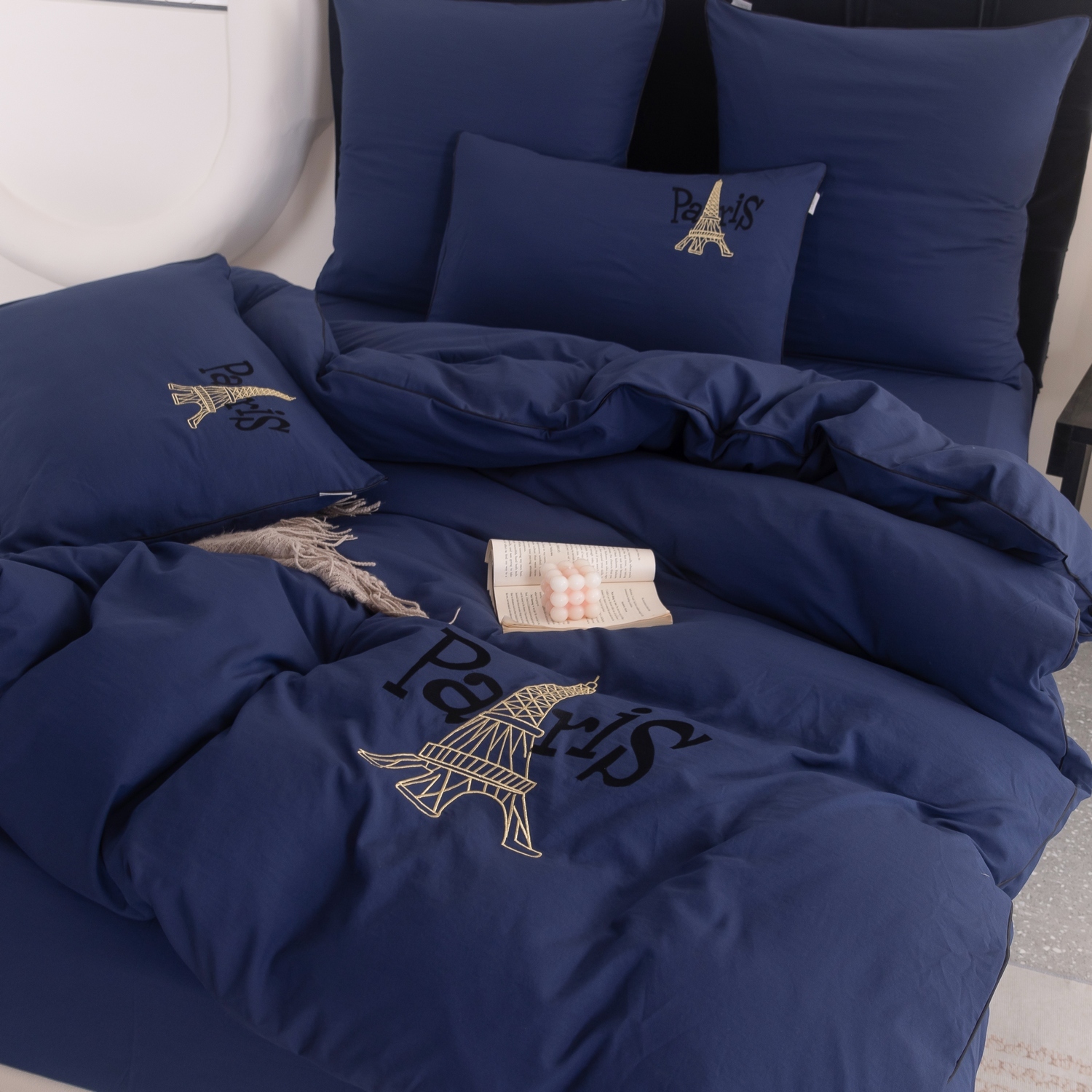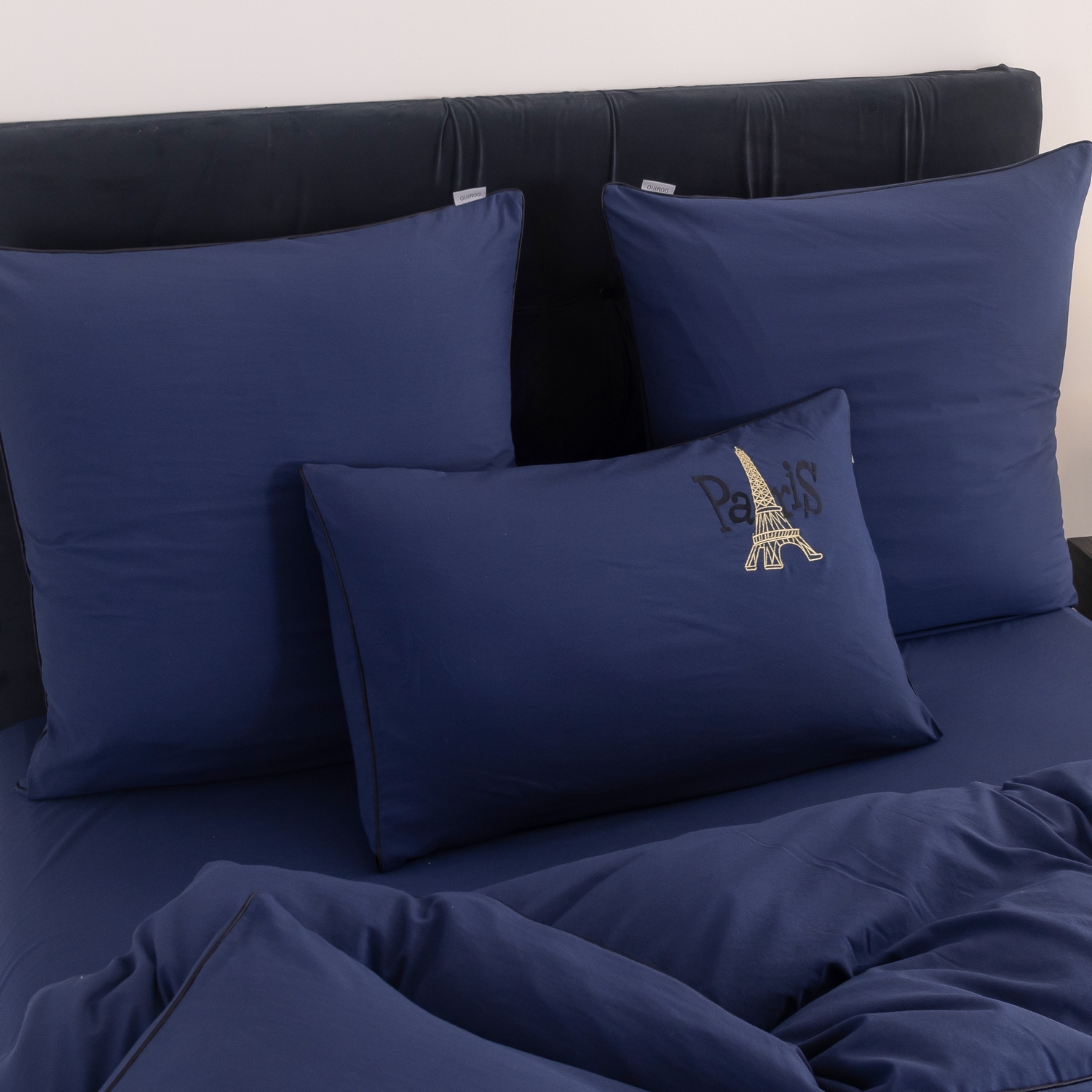 Элегантная вышивка с изображением Эйфелевой башни и надписью Paris придает дизайну неповторимый шарм, а изящный кант по периметру деликатно подчеркивает утонченность и изысканность каждого комплекта.