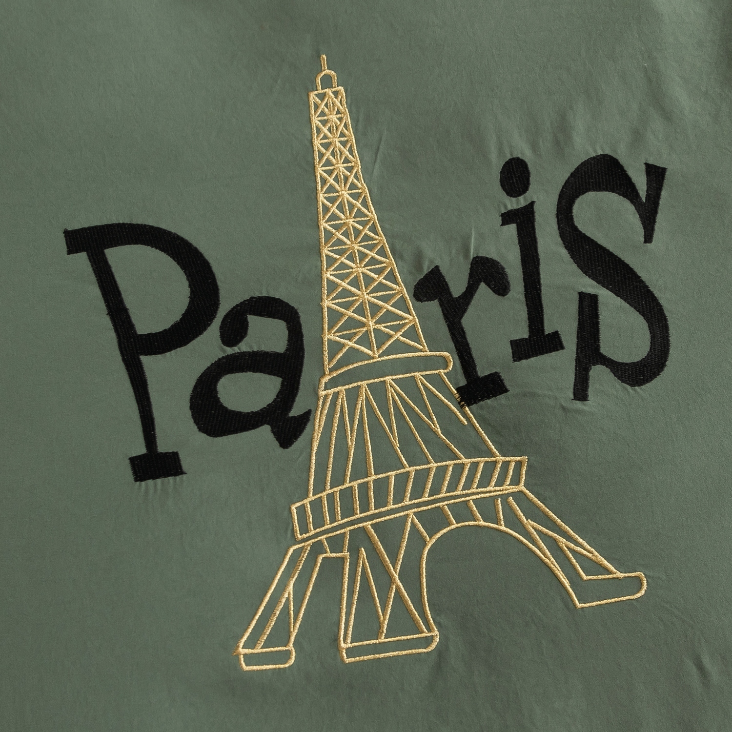 Элегантная вышивка с изображением Эйфелевой башни и надписью Paris придает дизайну неповторимый шарм, а изящный кант по периметру деликатно подчеркивает утонченность и изысканность каждого комплекта.