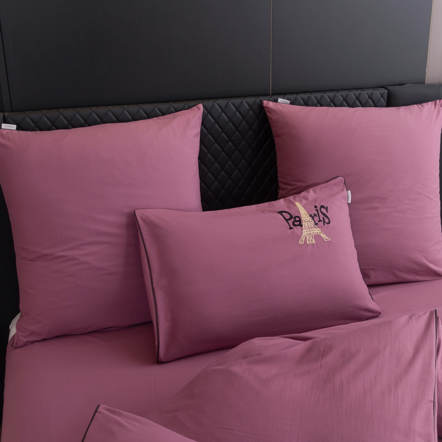 Элегантная вышивка с изображением Эйфелевой башни и надписью Paris придает дизайну неповторимый шарм, а изящный кант по периметру деликатно подчеркивает утонченность и изысканность каждого комплекта.