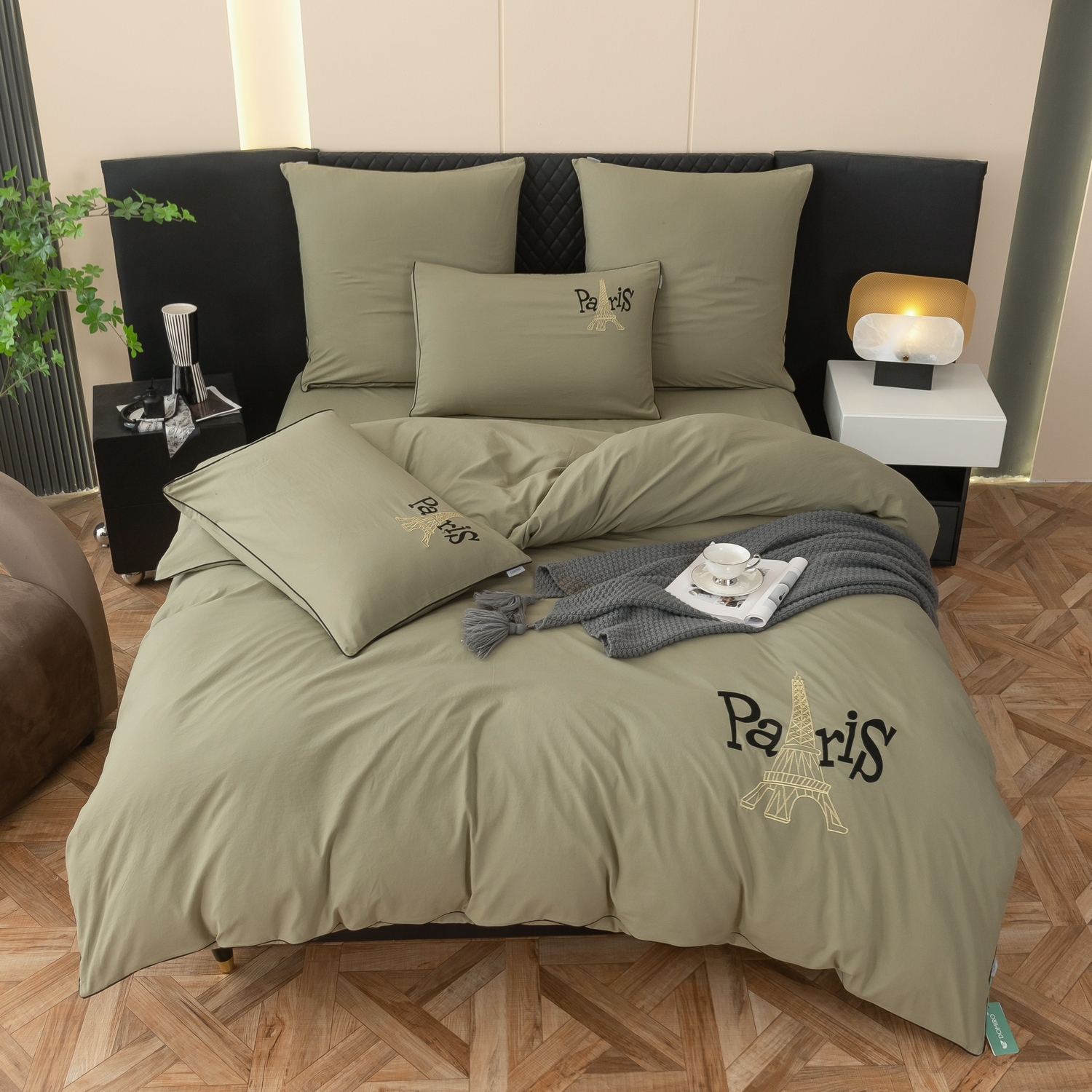 Элегантная вышивка с изображением Эйфелевой башни и надписью Paris придает дизайну неповторимый шарм, а изящный кант по периметру деликатно подчеркивает утонченность и изысканность каждого комплекта.