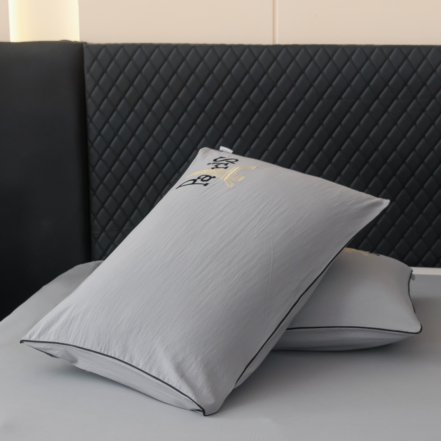 Элегантная вышивка с изображением Эйфелевой башни и надписью Paris придает дизайну неповторимый шарм, а изящный кант по периметру деликатно подчеркивает утонченность и изысканность каждого комплекта.