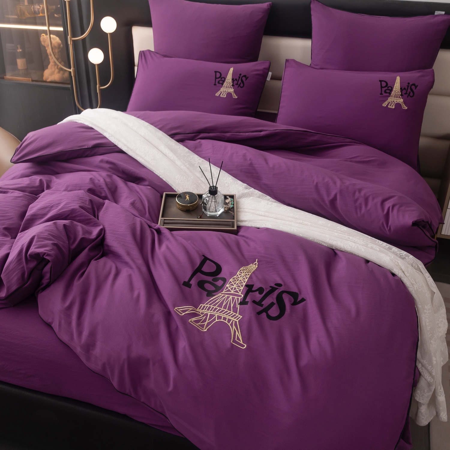 Элегантная вышивка с изображением Эйфелевой башни и надписью Paris придает дизайну неповторимый шарм, а изящный кант по периметру деликатно подчеркивает утонченность и изысканность каждого комплекта.