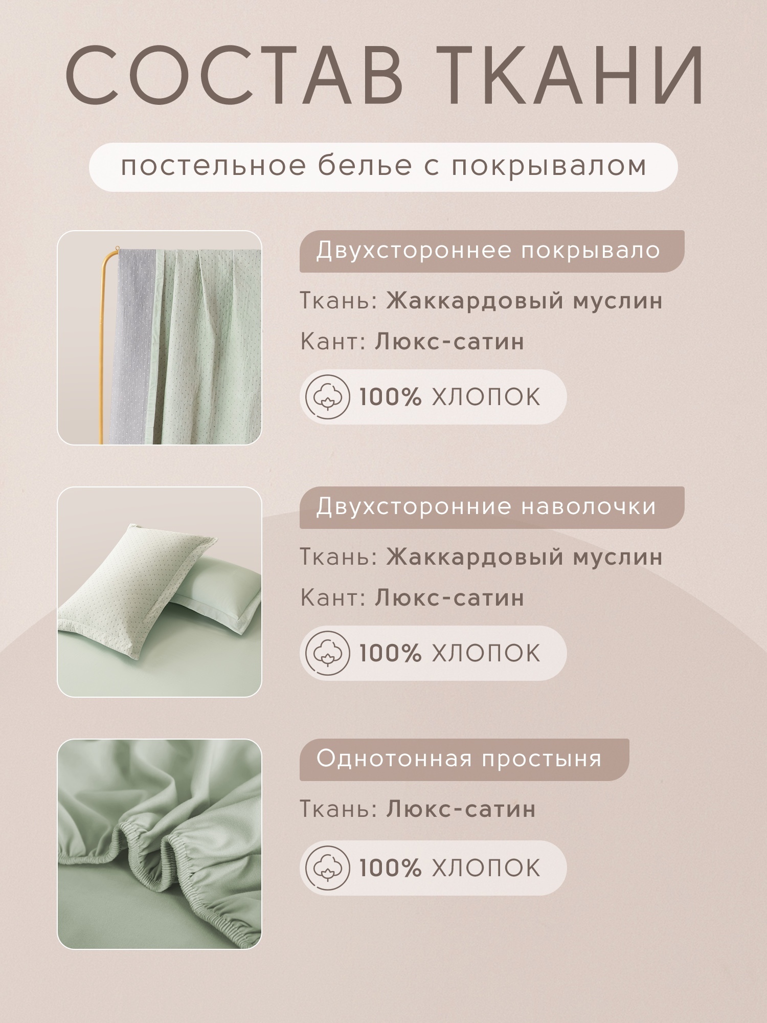 Жаккардовый муслин 100% хлопок/Люкс-Сатин 100% хлопок | наполнитель покрывала: 100% эковолокно микрогель