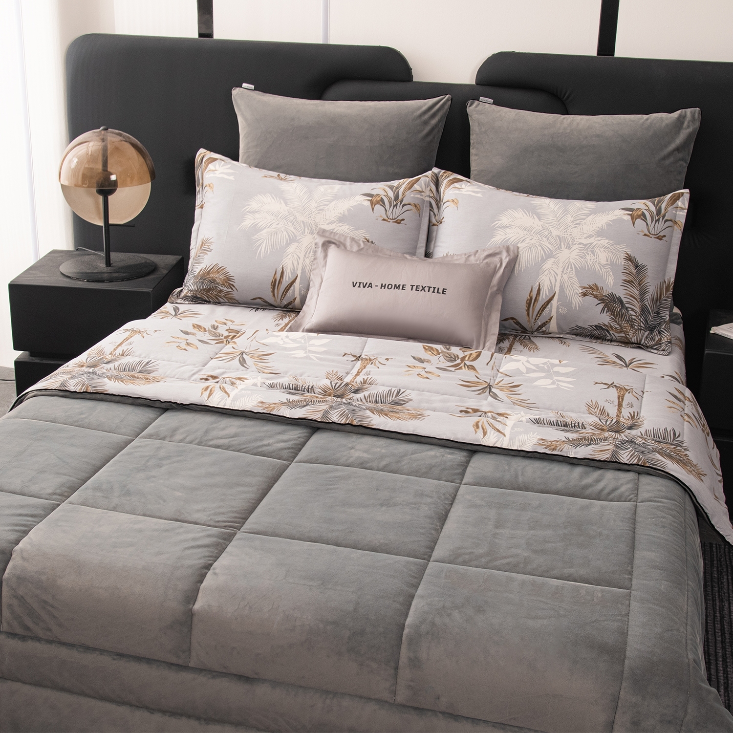 • Элегантность и уют: Одеяло украшено изысканной геометрической стёжкой и бархатным кантом. Верхняя сторона мягкий велюр, придает комплекту благородный вид, а нижняя — 100% хлопковый сатин, отлично пропускает воздух и дарит комфорт во время сна.