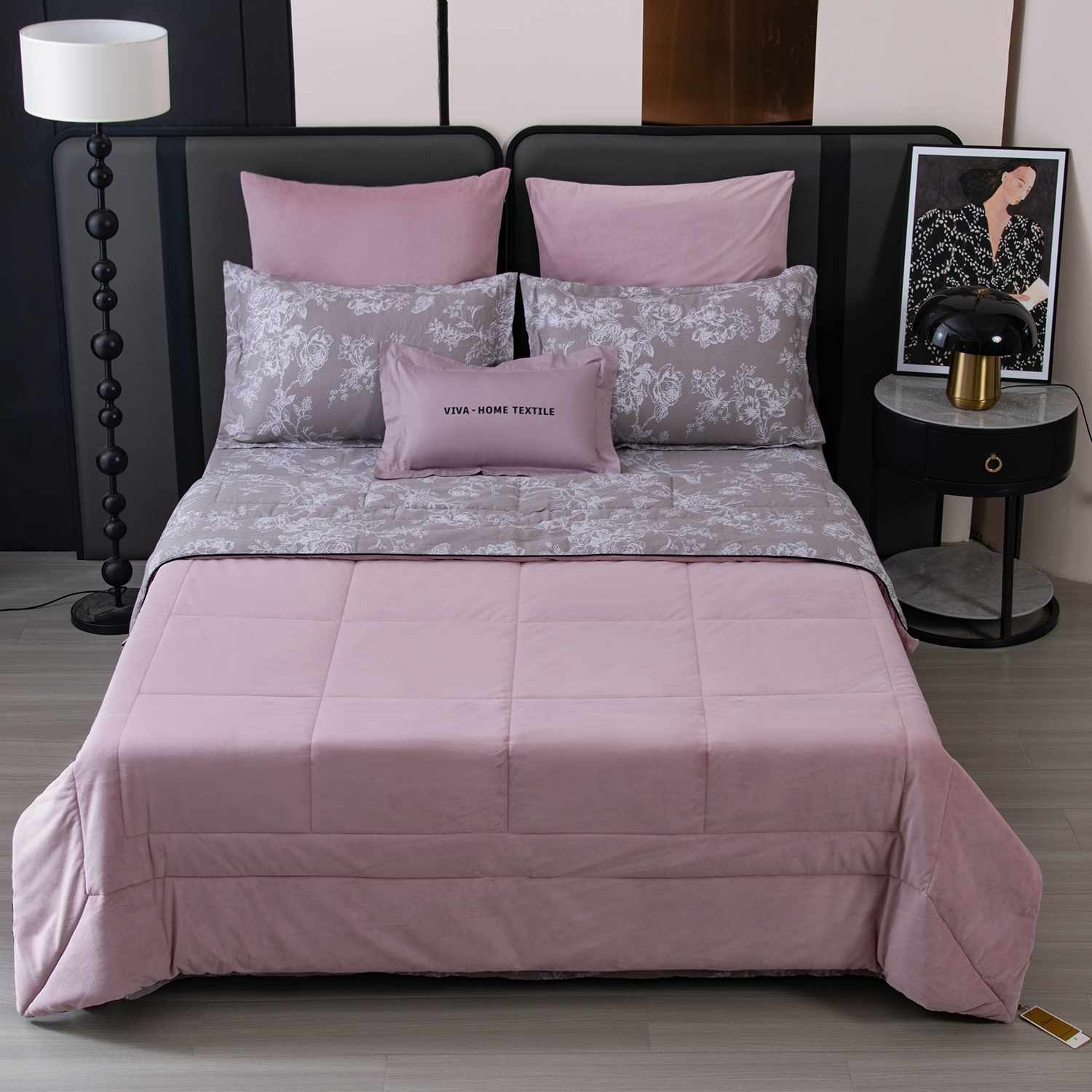 • Элегантность и уют: Одеяло украшено изысканной геометрической стёжкой и бархатным кантом. Верхняя сторона мягкий велюр, придает комплекту благородный вид, а нижняя — 100% хлопковый сатин, отлично пропускает воздух и дарит комфорт во время сна.