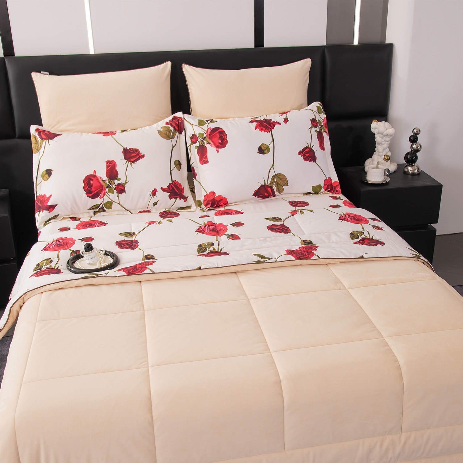 Стеганое одеяло-покрывало идеально сочетается с дизайном белья и входит в комплект, избавляя вас от лишних хлопот.