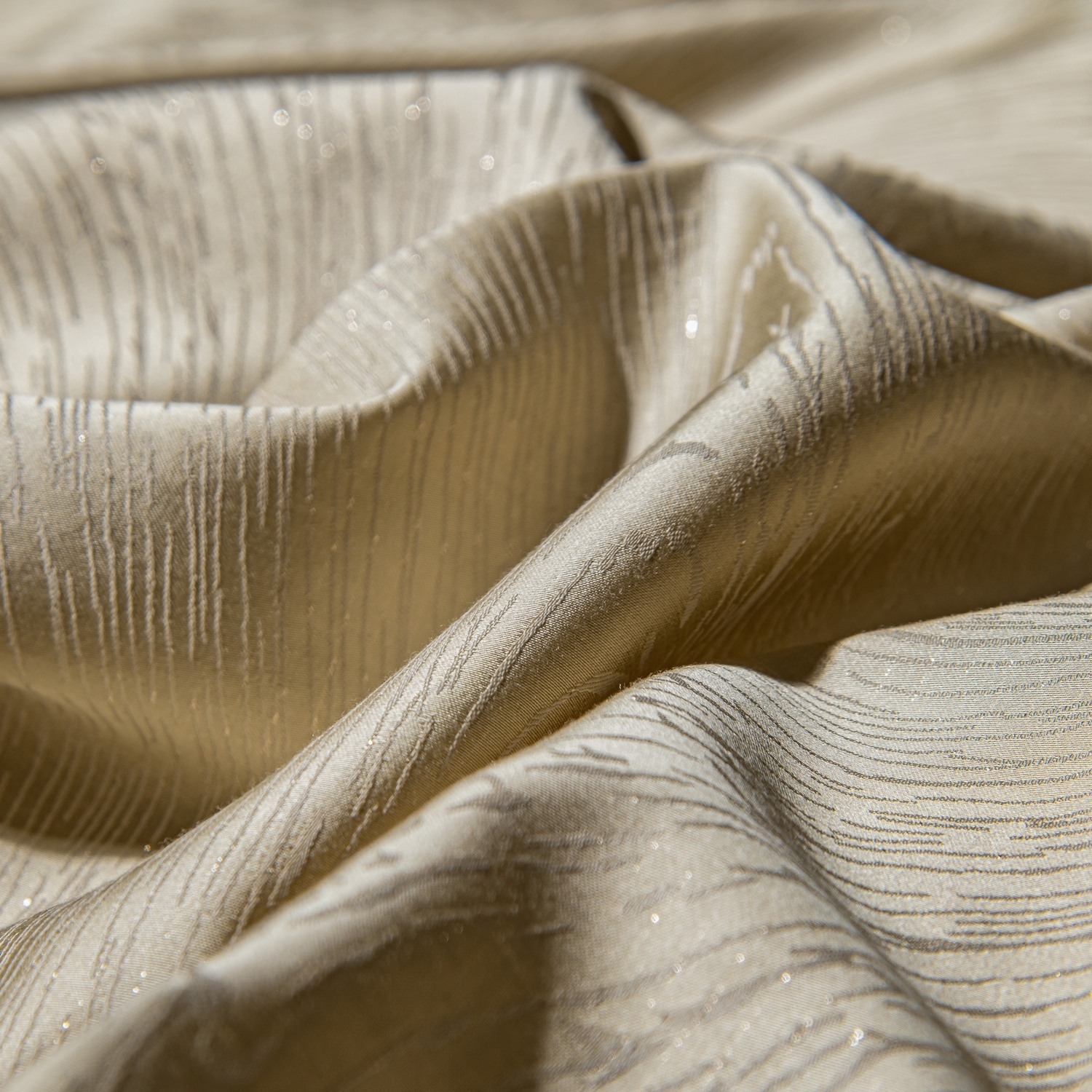 Жаккардовые ткани изготовлены на специальных станках из 100% хлопка. Благодаря сложному переплетению нитей впечатляют сложным рельефным рисунком и имеют шикарный дизайн. Тонкие золотые нити создают мерцающий эффект, глубину и ощущение изысканной роскоши.