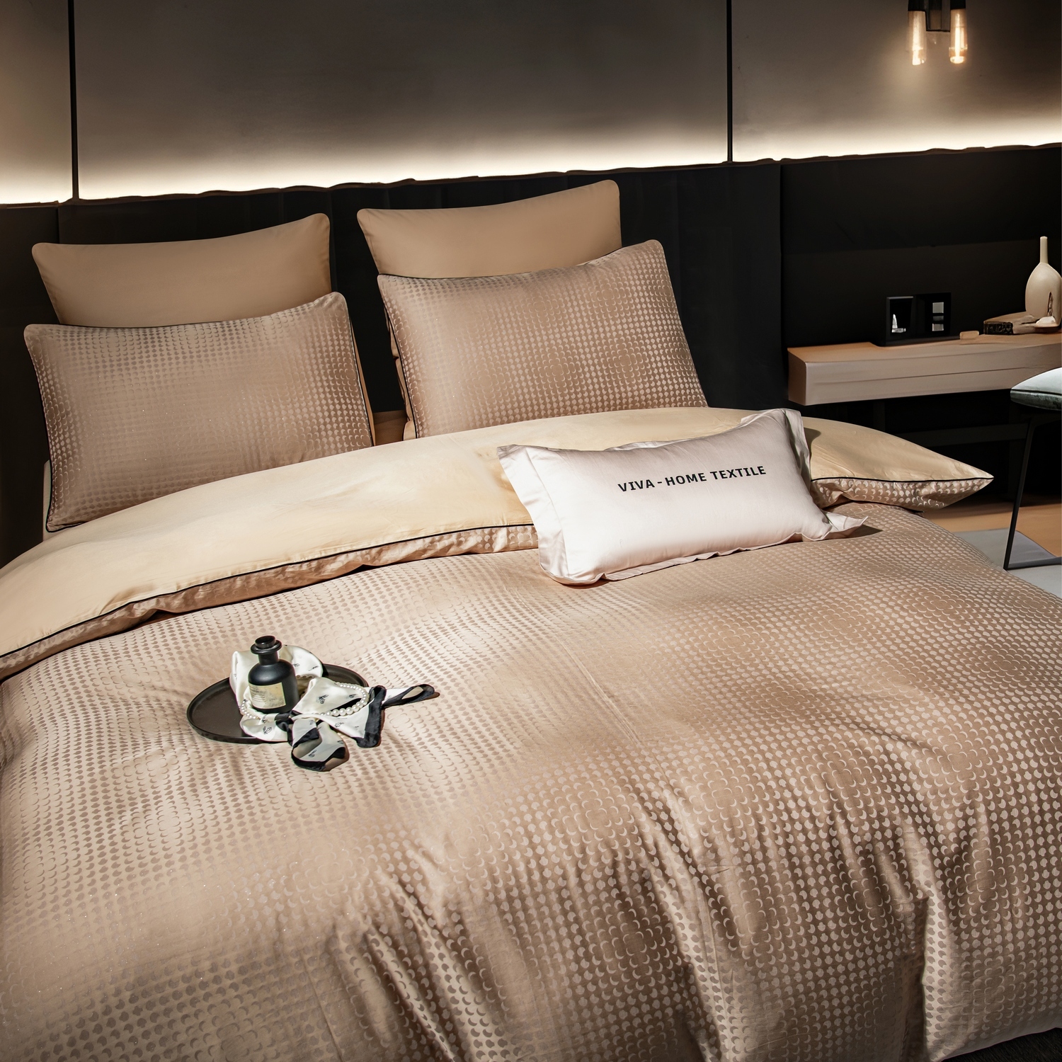 Коллекция “Сатин-Жаккард Тессоро” это воплощение утонченности, где благородные материалы, выразительная фактура и продуманный комфорт сливаются воедино, создавая по-настоящему роскошную атмосферу в спальне.