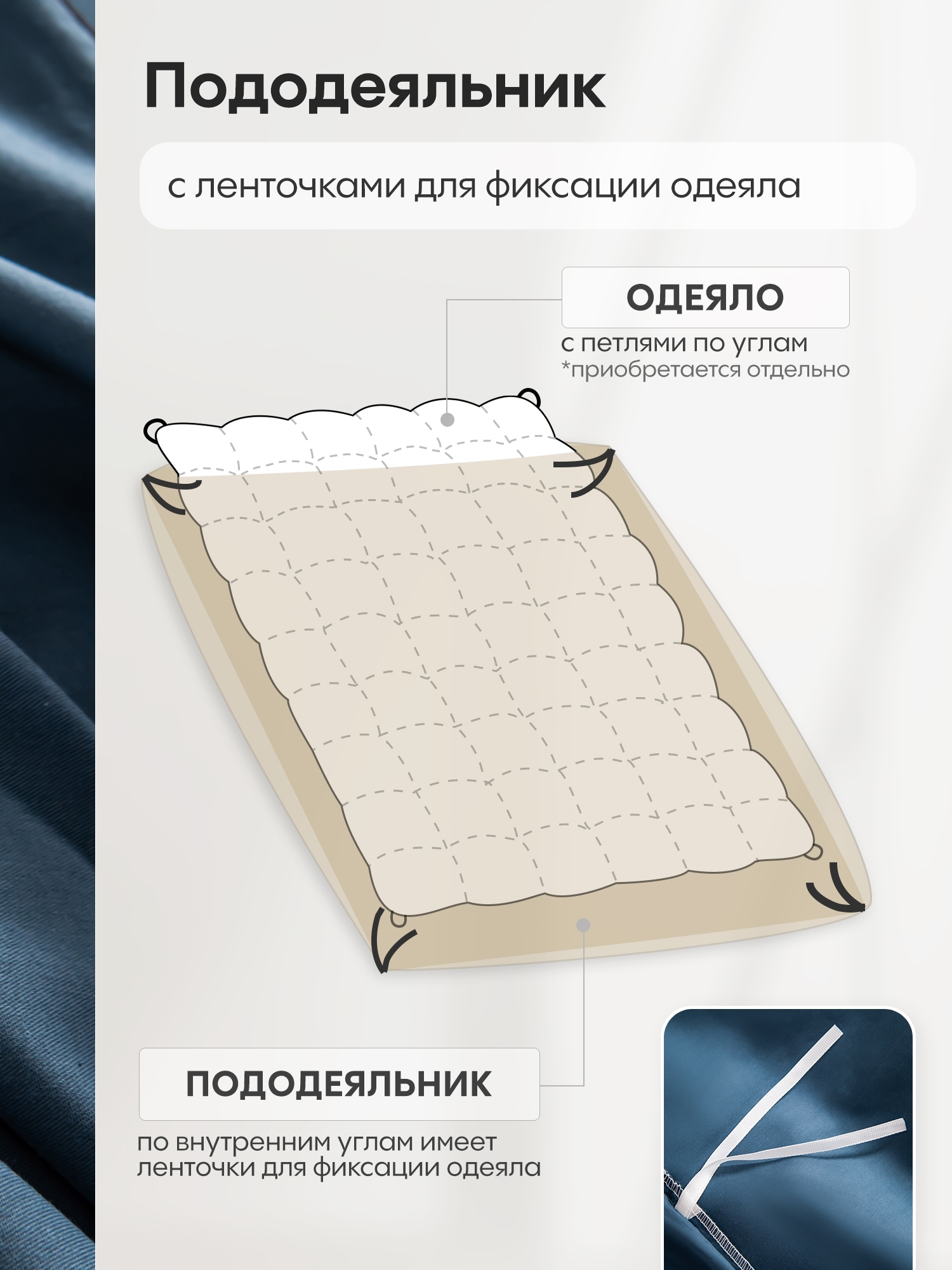 Пододеяльник и наволочки: Украшены кантом по периметру