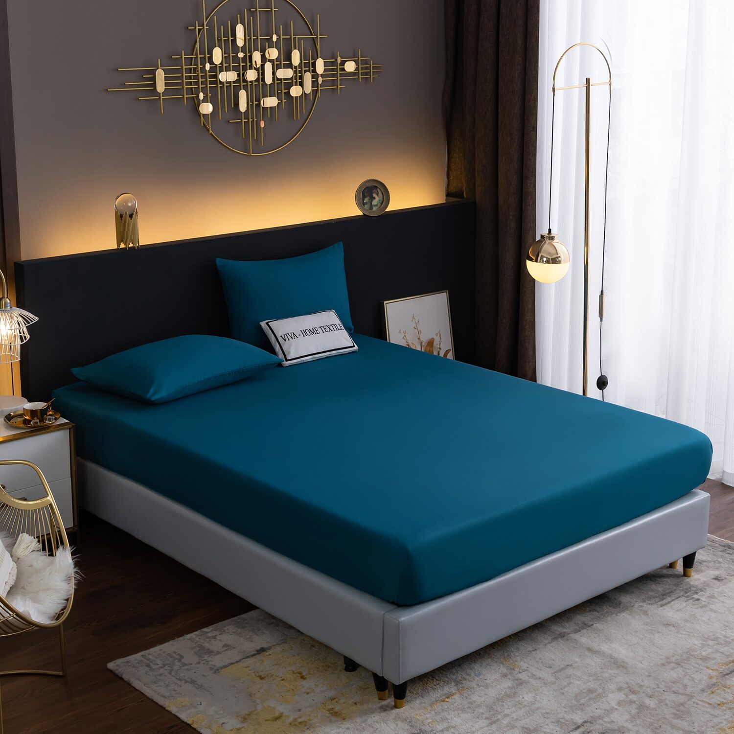 КПБ Однотонный Сатин на резинке CSR039, Евро, 4 наволочки, простынь 160*200*35