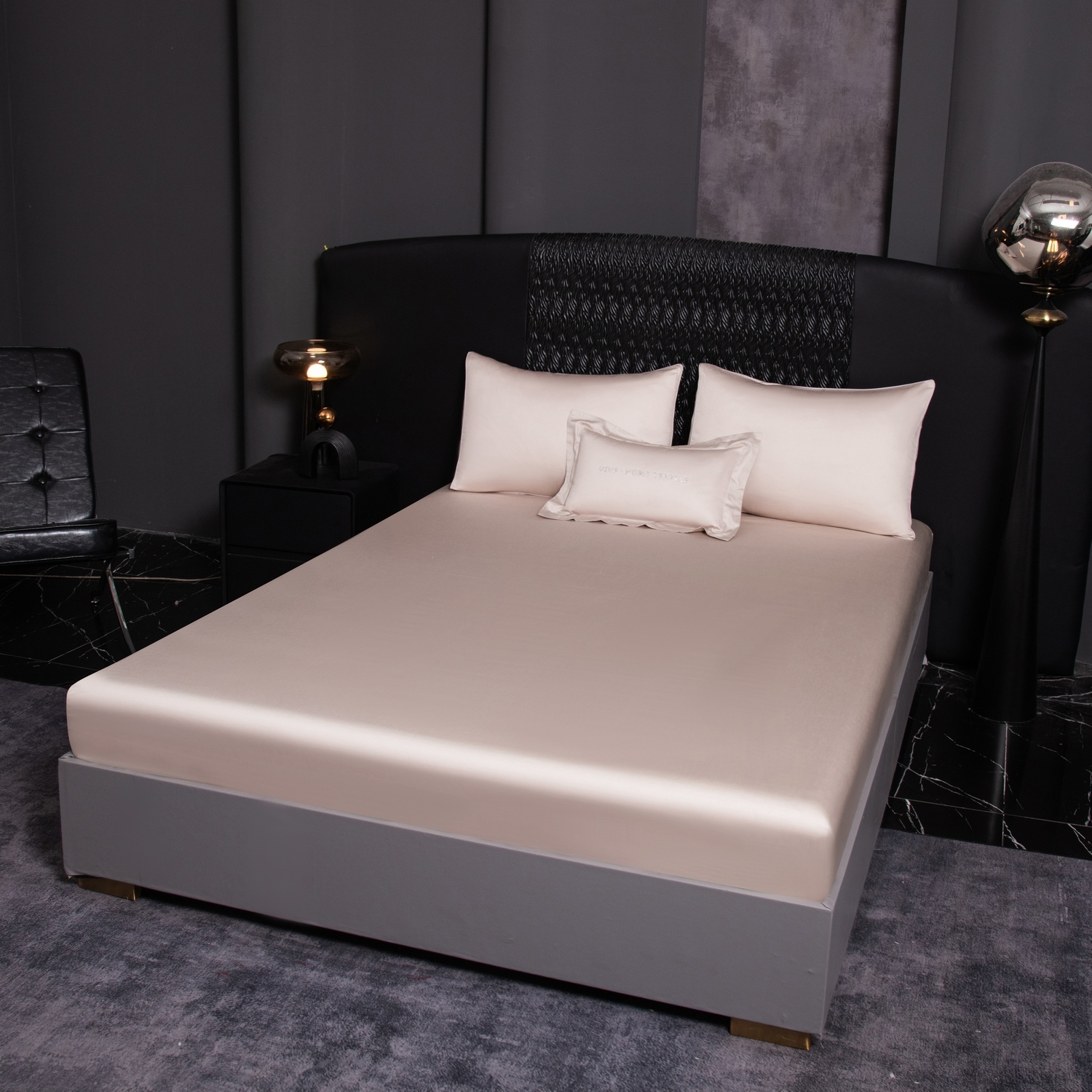 КПБ Однотонный Сатин Премиум на резинке OCPR002, 2 спальный, 4 наволочки, простынь 180*200*30
