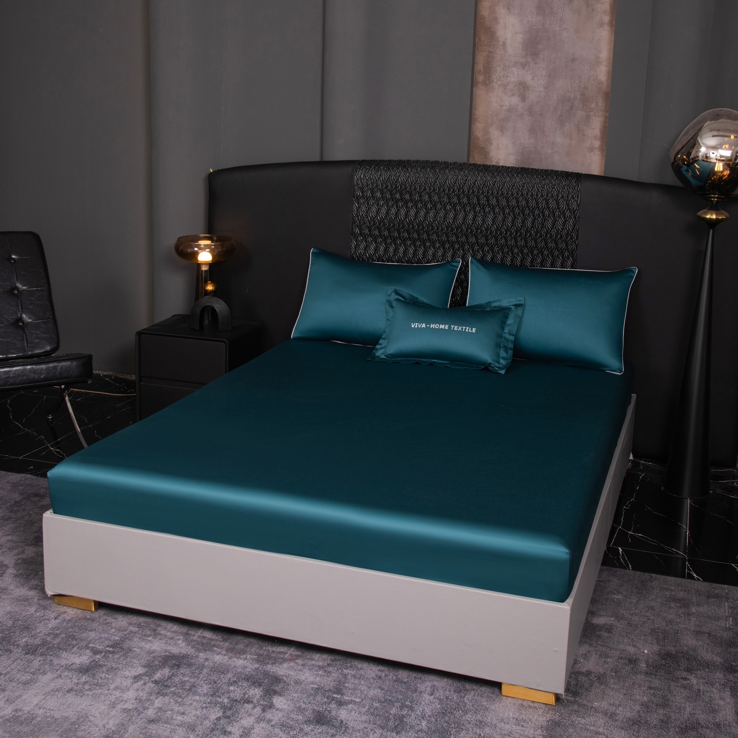 КПБ Однотонный Сатин Премиум на резинке OCPR007, 2 спальный, 4 наволочки, простынь 160*200*30