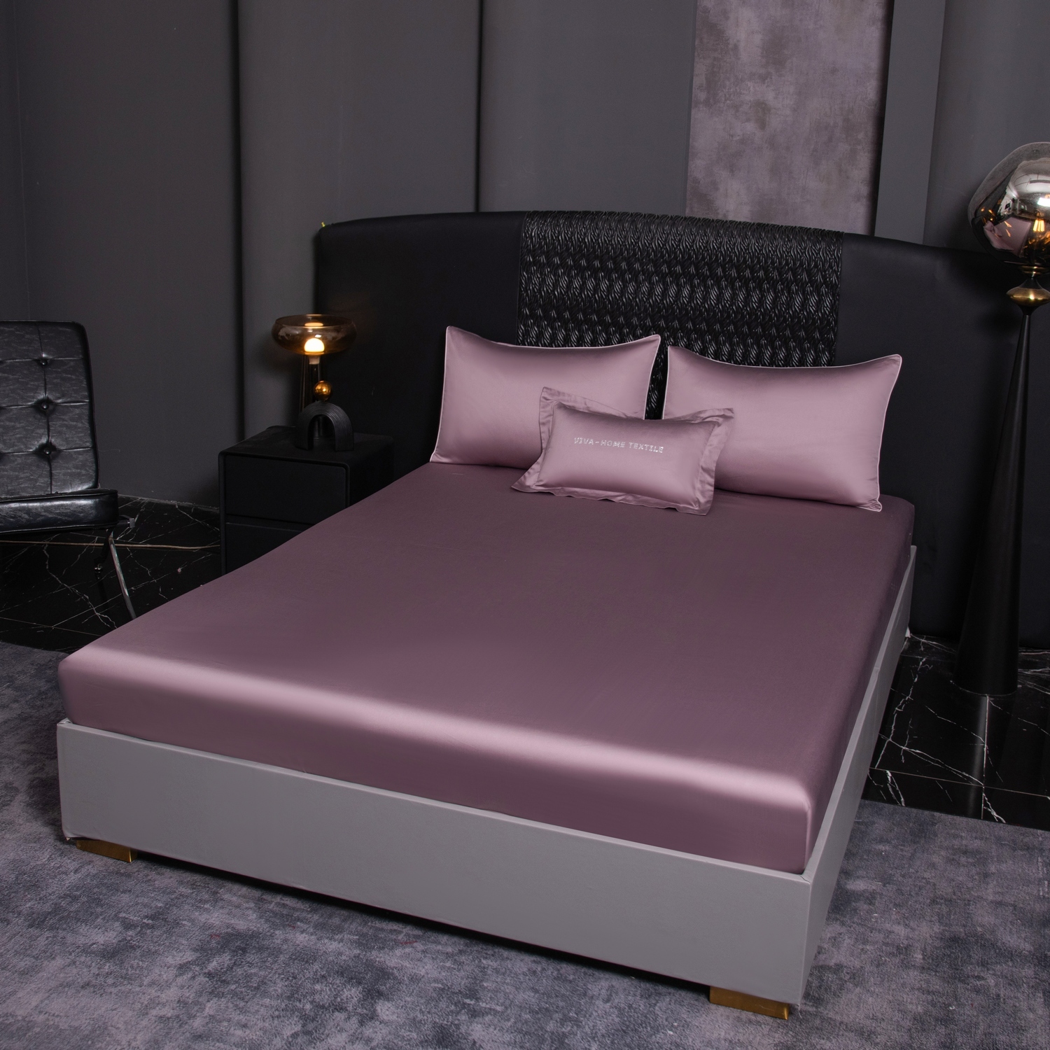 КПБ Однотонный Сатин Премиум на резинке OCPR008, Евро, 4 наволочки, простынь 160*200*30