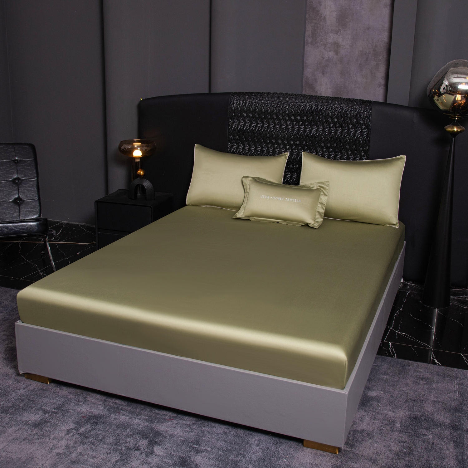 КПБ Однотонный Сатин Премиум на резинке OCPR009, 2 спальный, 4 наволочки, простынь 140*200*30