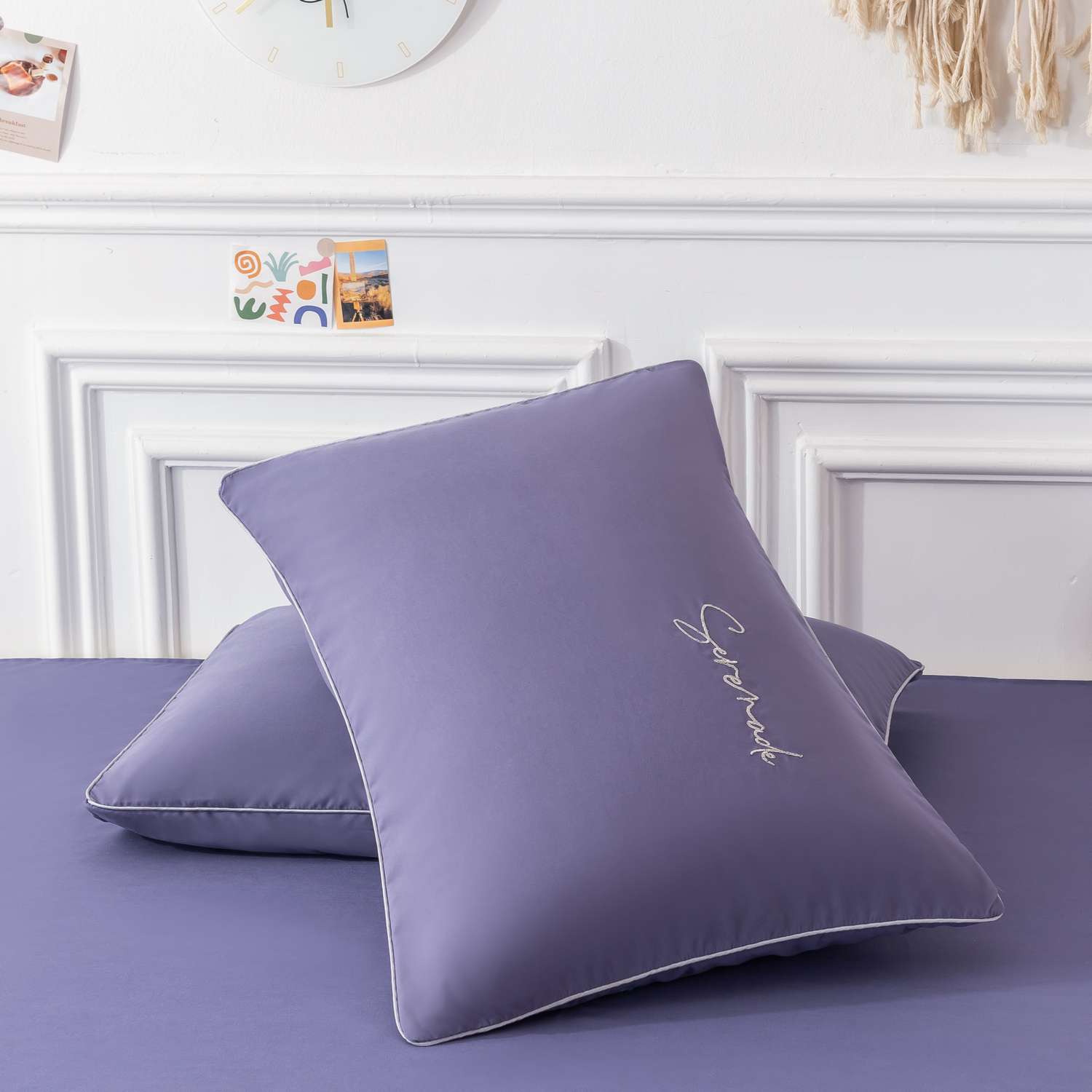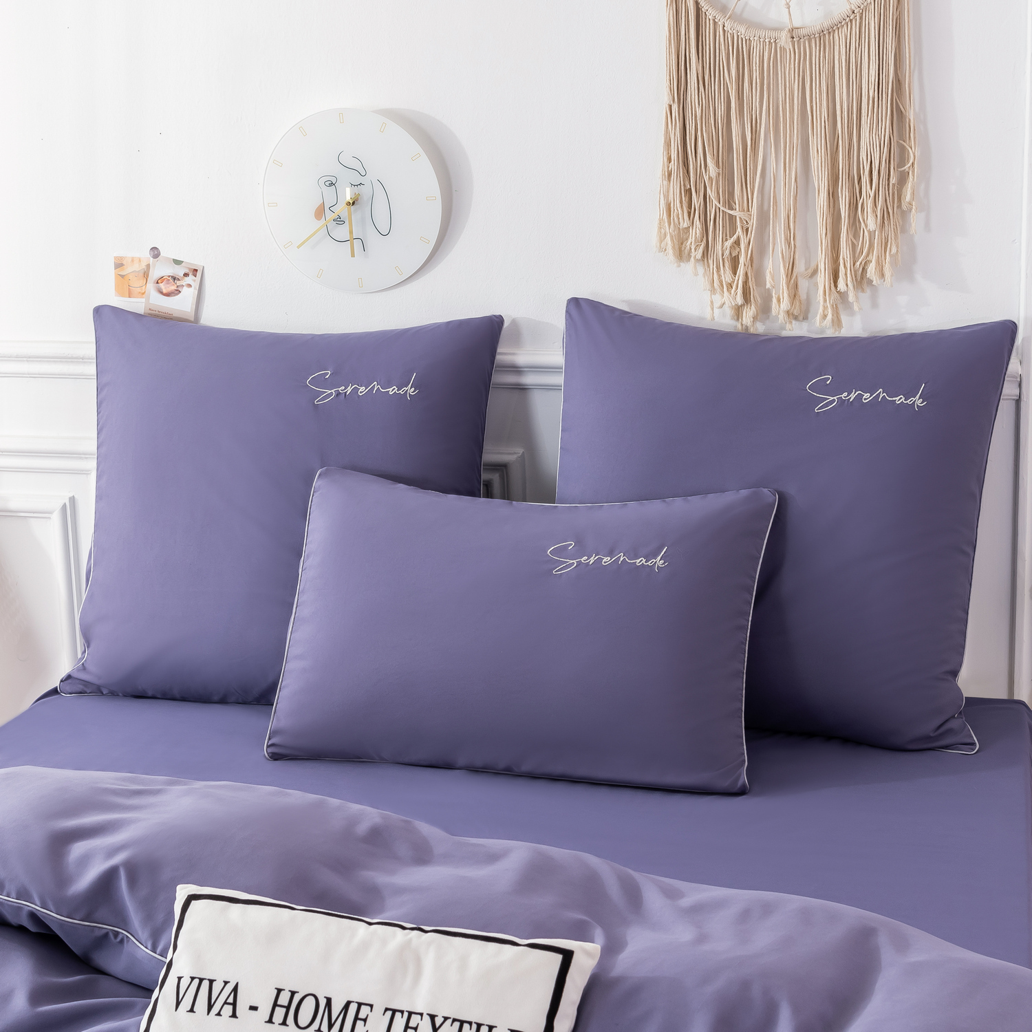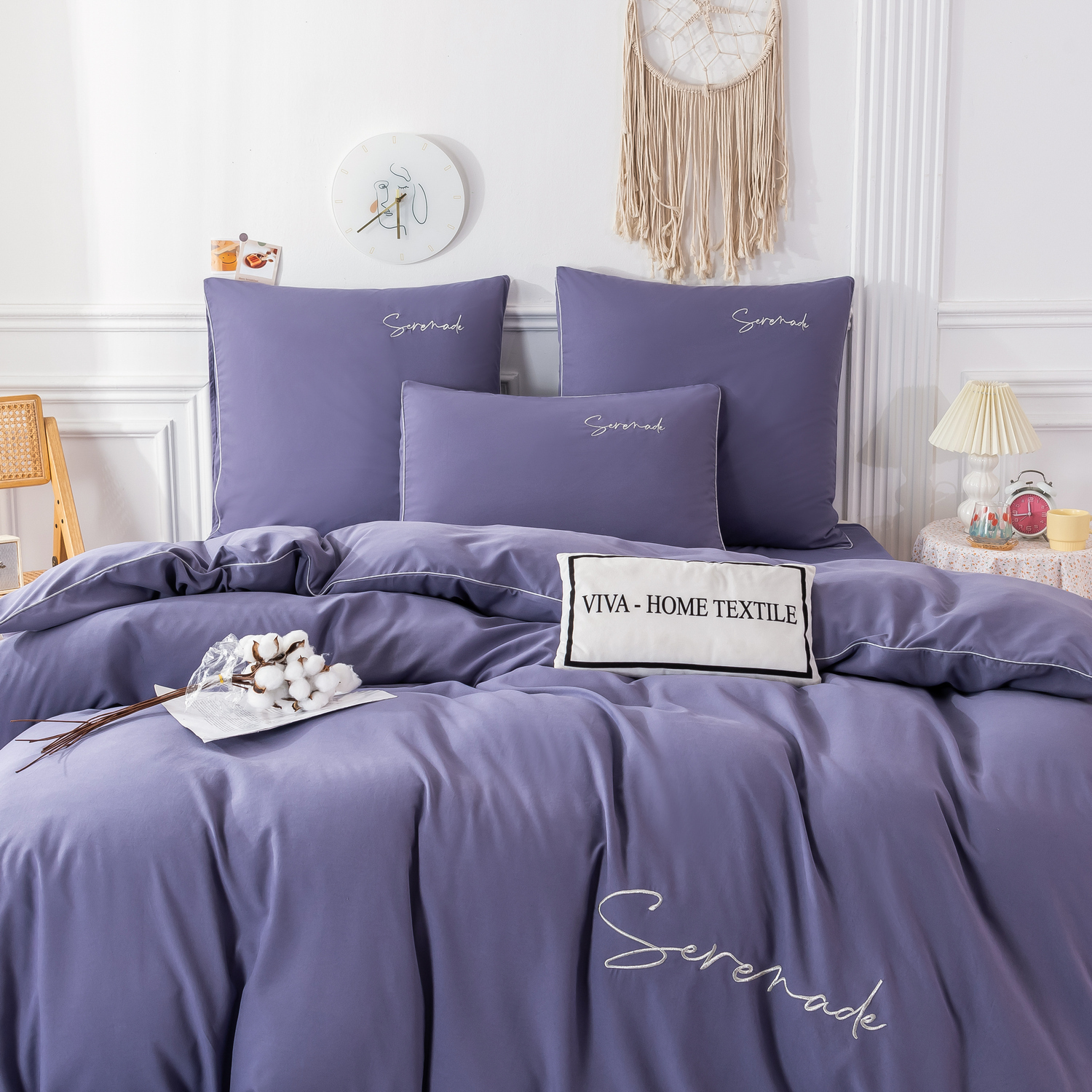 Пододеяльник и наволочки: Украшены вышивкой и кантом по периметру