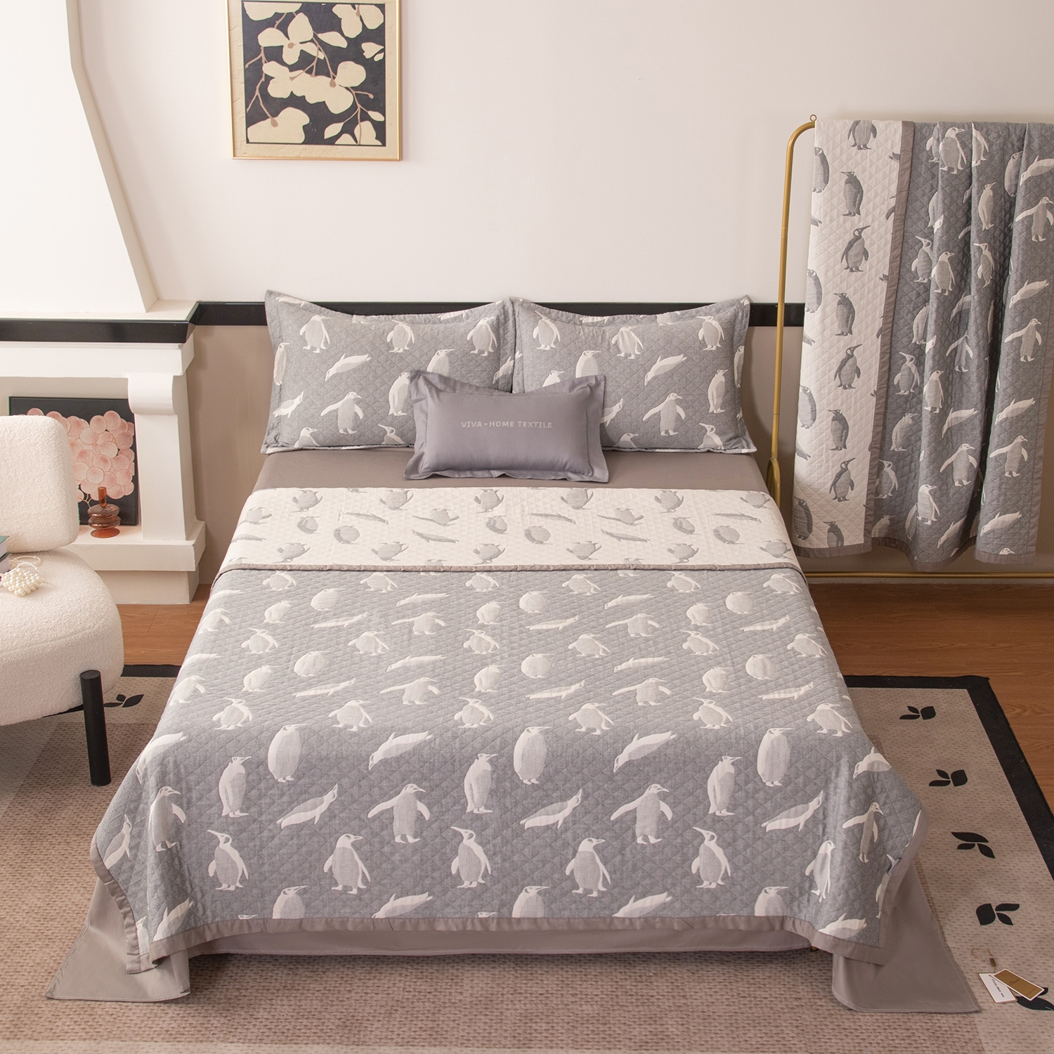 Реверсивный дизайн покрывала предлагает два настроения для вашей спальни: