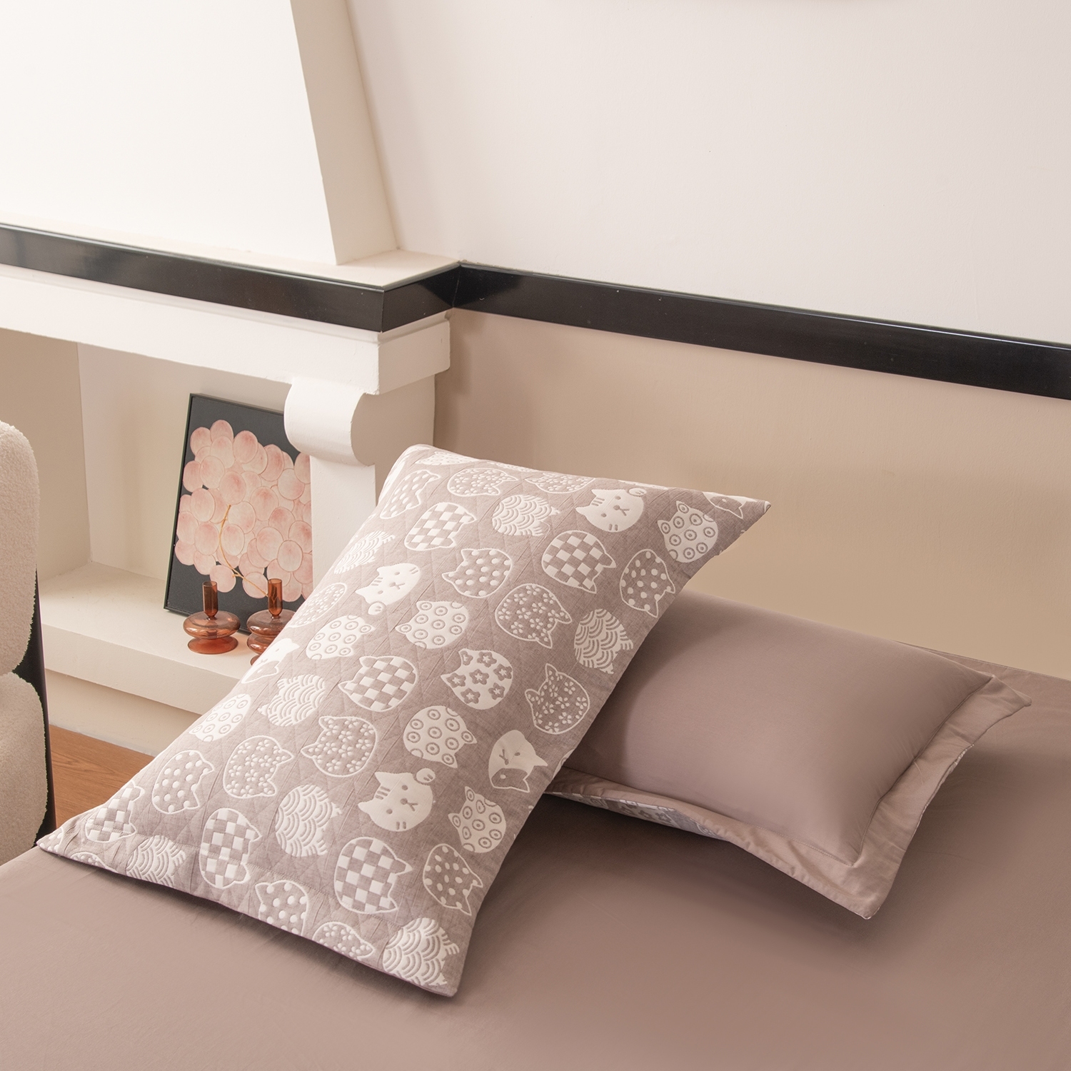 Покрывало из жаккардового муслина с декоративной простёжкой образует утонченный рельефный узор. Ткань отличается мягкостью, лёгким благородным блеском и изысканной текстурой. Дополняет композицию широкий кант в тон простыни, который гармонично объединяет все элементы комплекта.