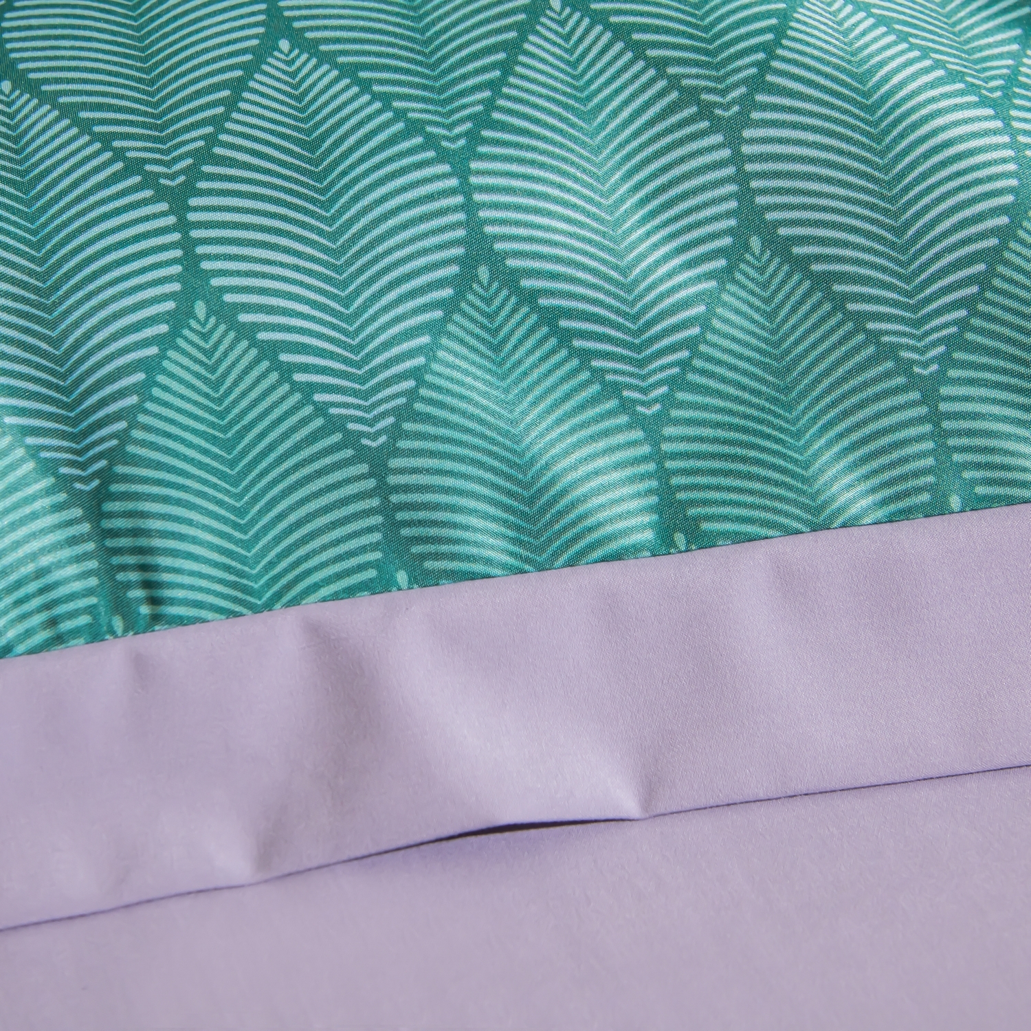 Ткань компаньон: Верх пододеяльника — мерсеризованный сатин, низ пододеяльника — сатин. Наволочки 50*70 см и 70*70 см с разных сторон разной расцветки. Пододеяльник с разных сторон разного цвета. Простыня однотонная такого же цвета, как низ пододеяльника.