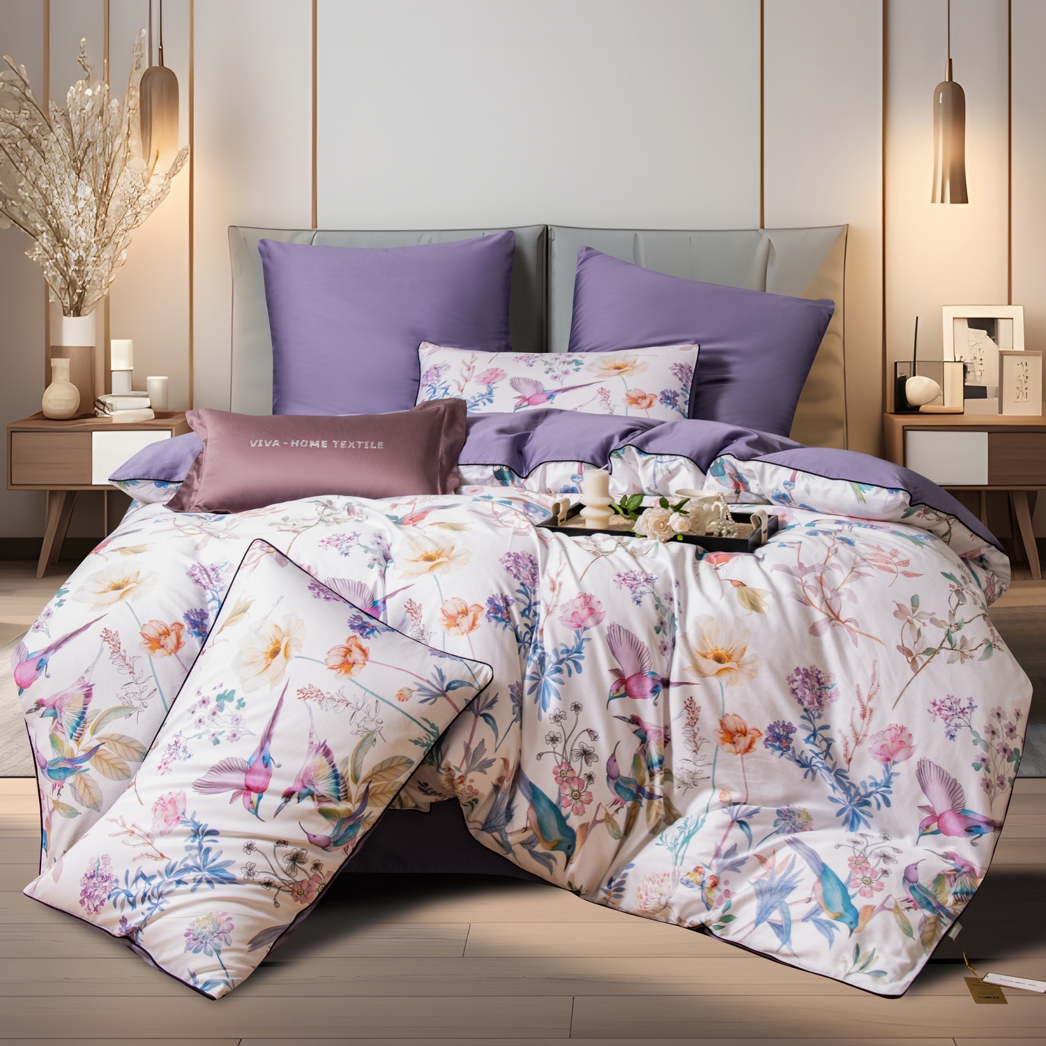 Ткань компаньон: Наволочки 50*70 с разных сторон разной расцветки, наволочки 70*70 однотонные в цвет простыни, пододеяльник с разных сторон разного цвета, простыня однотонная такого же цвета, как низ пододеяльника.