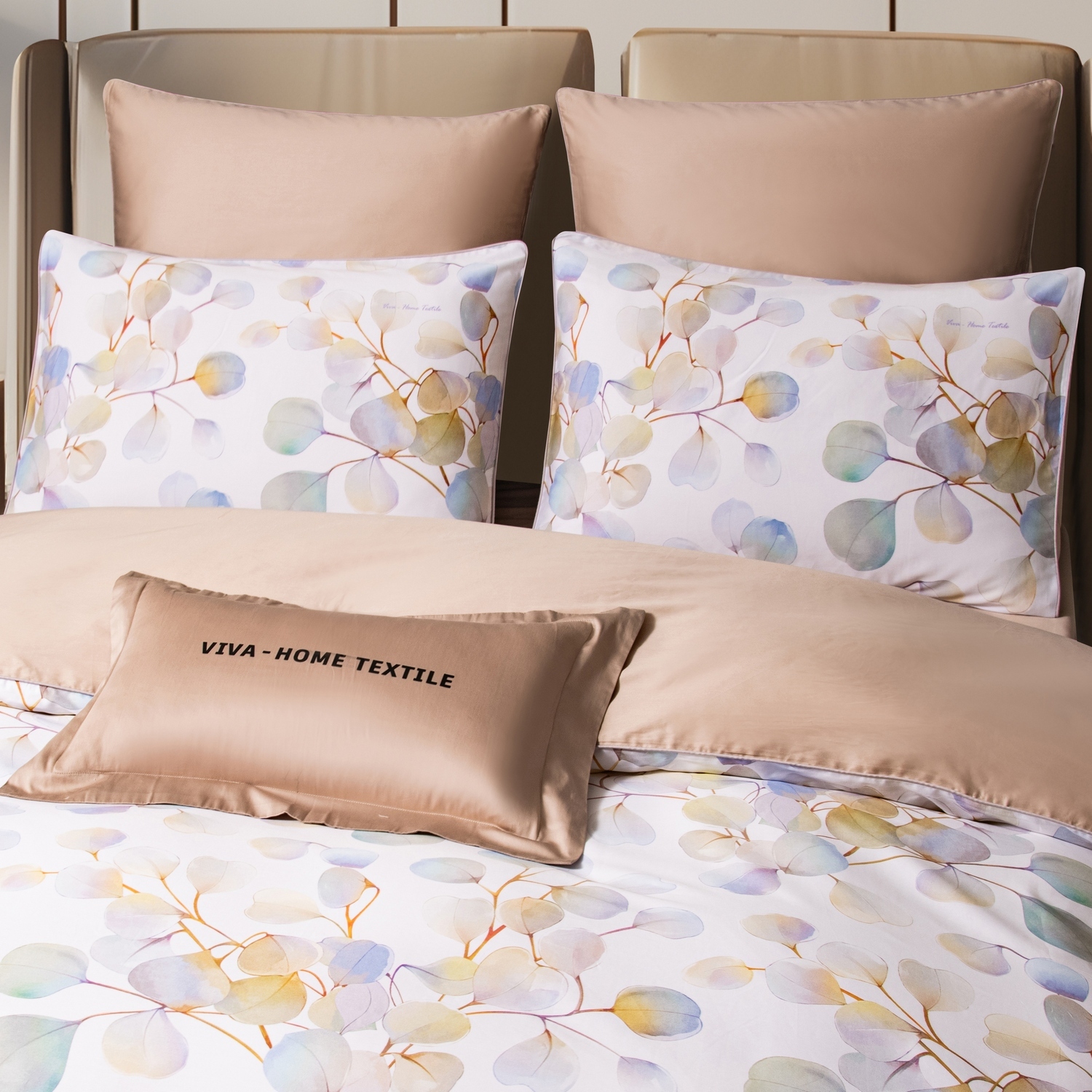 Ткань компаньон: Наволочки 50*70 с разных сторон разной расцветки, наволочки 70*70 однотонные в цвет простыни, пододеяльник с разных сторон разного цвета, простыня однотонная такого же цвета, как низ пододеяльника.