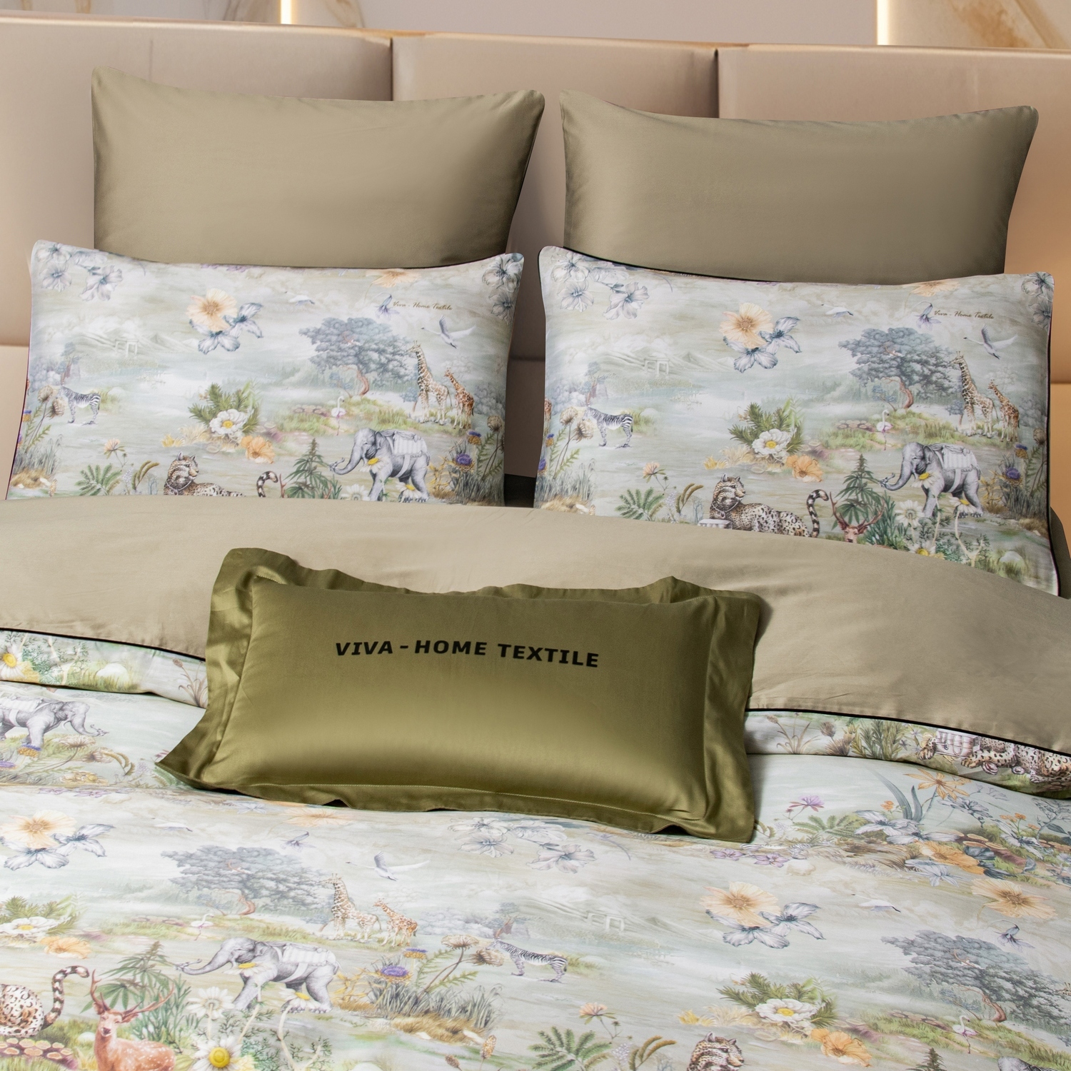 Комплект выполнен из мерсеризованного 100% египетского хлопка, что гарантирует его исключительное качество и долговечность.