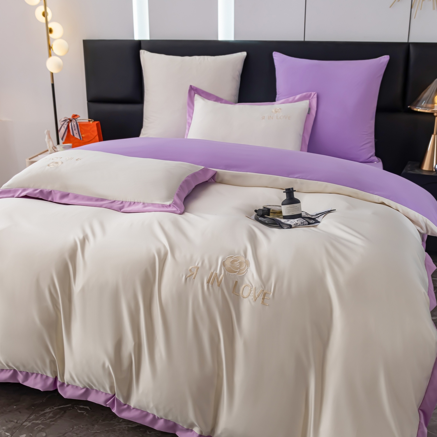 • Вышивкой и кантом украшены пододеяльник и наволочки (только 50*70 см)