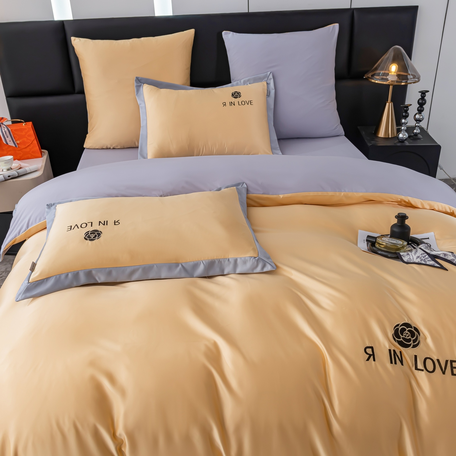 КПБ Сатин-Шелк Я IN LOVE на резинке LVR009, Евро, 4 наволочки, простынь 160*200*30