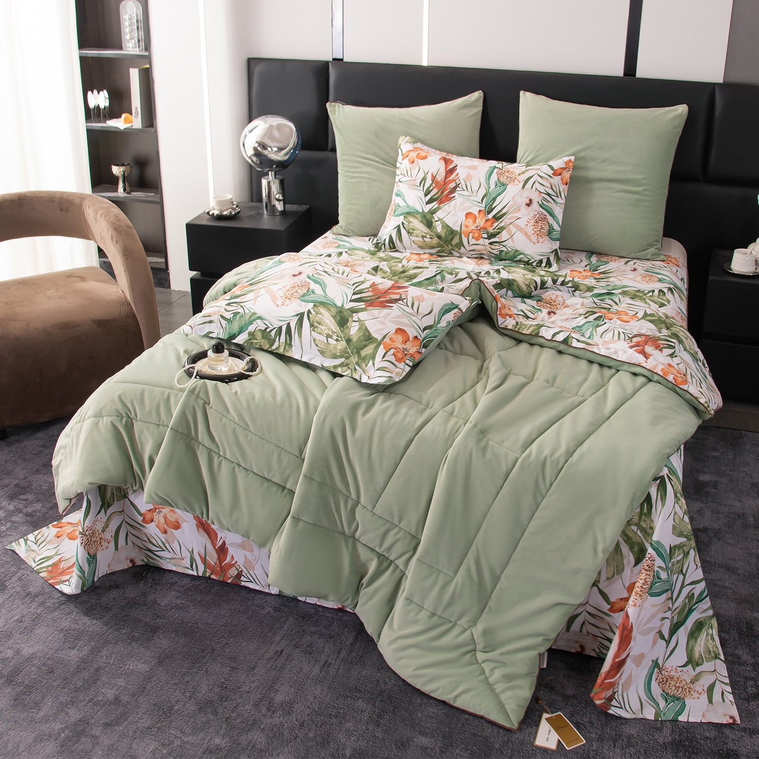 Стеганое одеяло-покрывало идеально сочетается с дизайном белья и входит в комплект, избавляя вас от лишних хлопот.