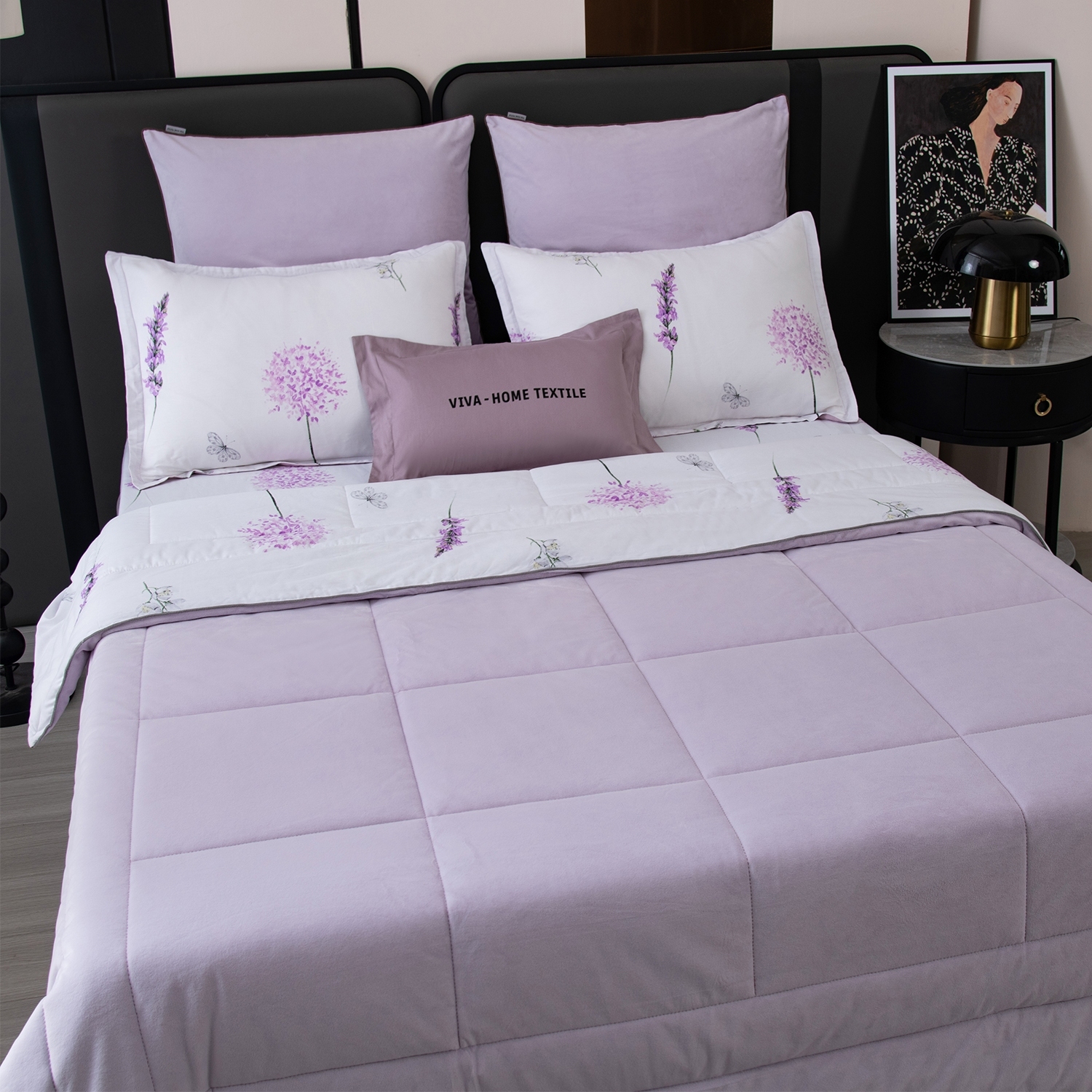 Стеганое одеяло-покрывало идеально сочетается с дизайном белья и входит в комплект, избавляя вас от лишних хлопот.