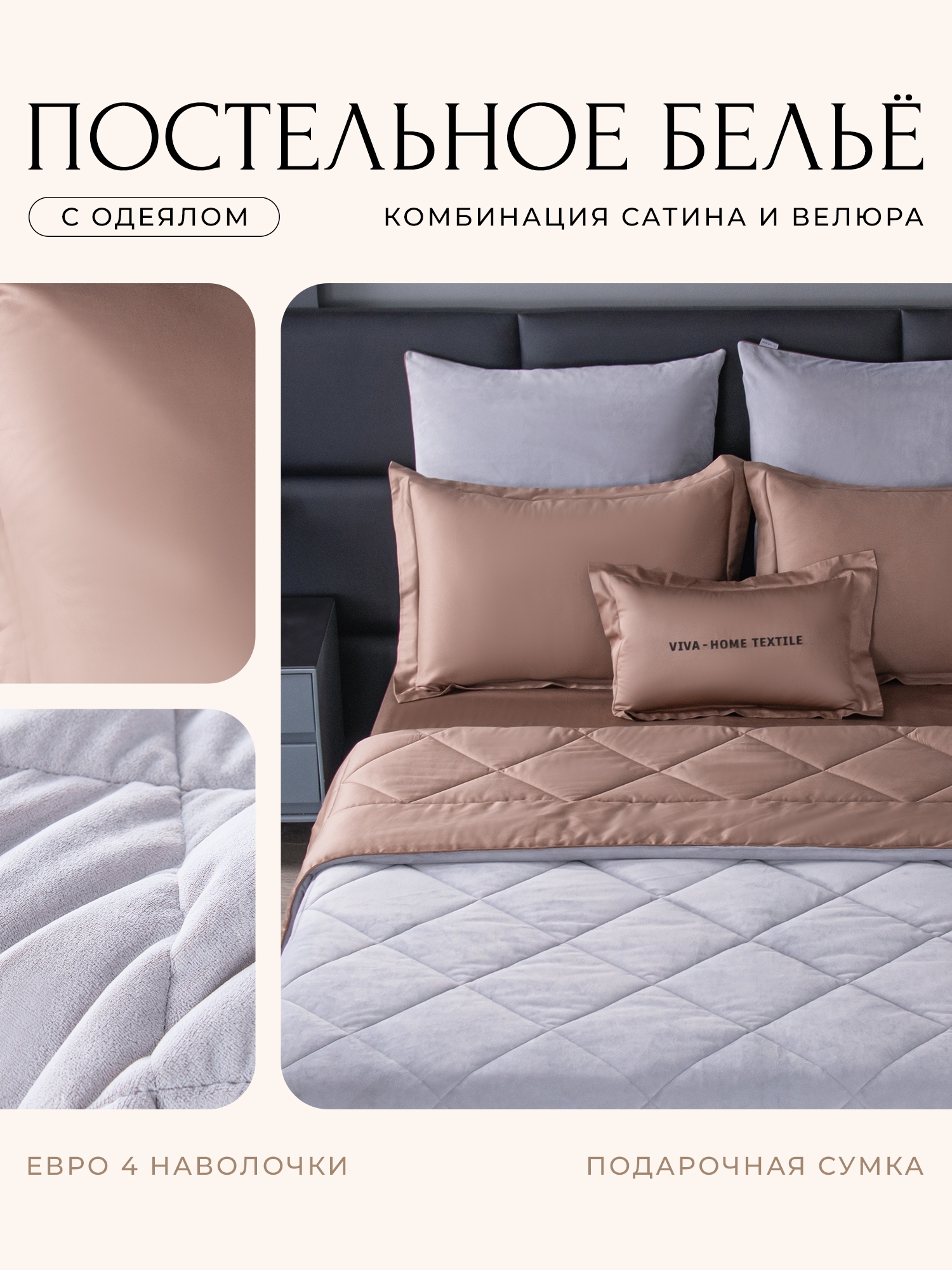 КПБ Сатин Velvet Premium с Одеялом VP003, Евро, 4 наволочки