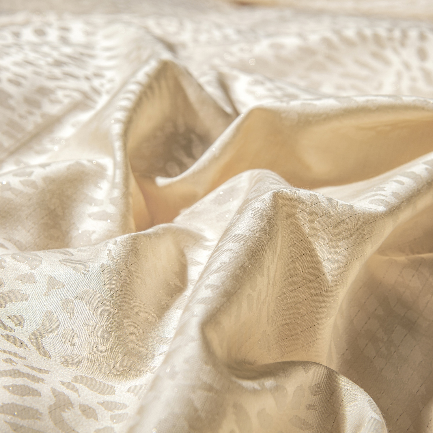 Жаккардовые ткани изготовлены на специальных станках из 100% хлопка. Благодаря сложному переплетению нитей впечатляют сложным рельефным рисунком и имеют шикарный дизайн. Тонкие золотые нити создают мерцающий эффект, глубину и ощущение изысканной роскоши.