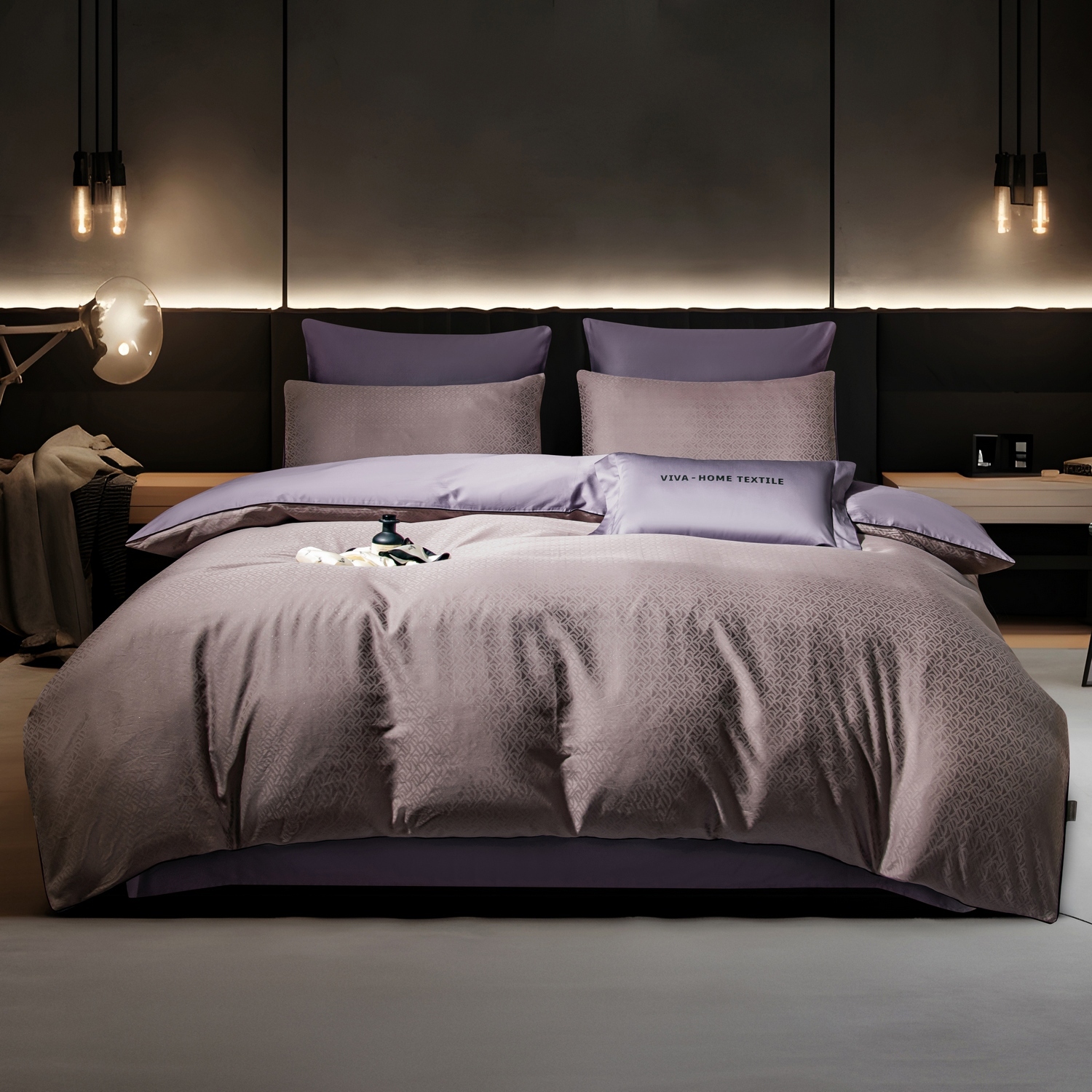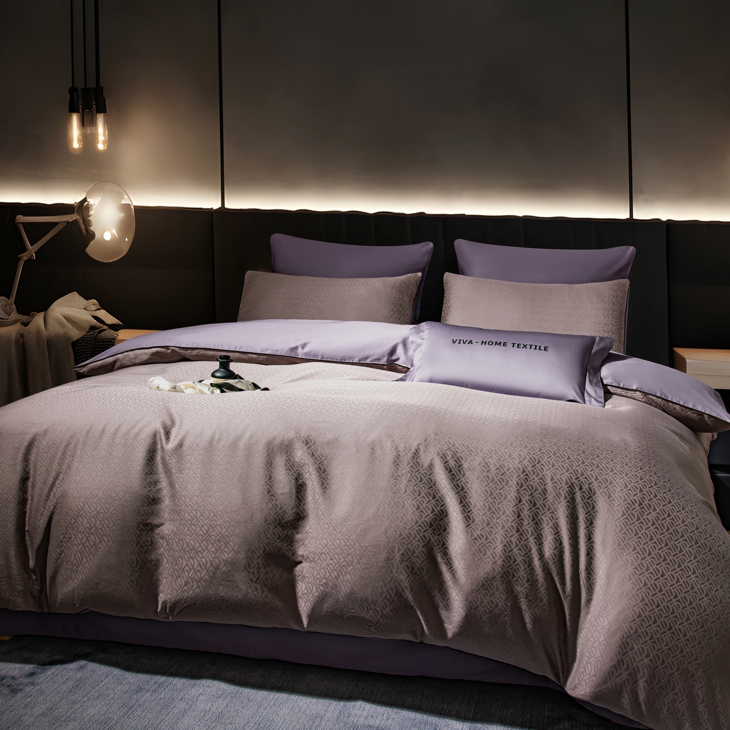 • Пододеяльник: Двусторонний жаккард сверху для эстетики, сатин снизу для максимального тактильного комфорта.