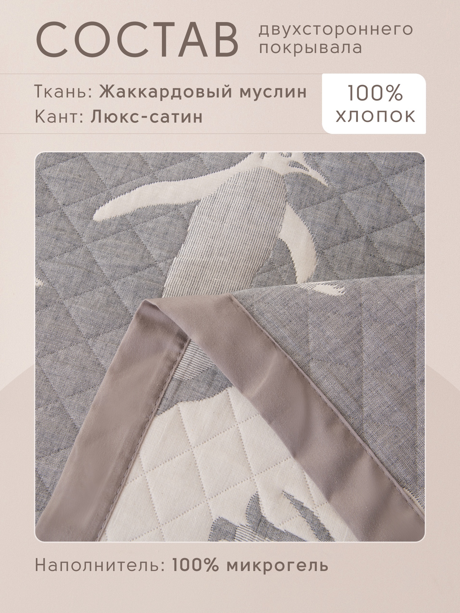 Жаккардовый муслин 100% хлопок | наполнитель покрывала: 100% эковолокно микрогель