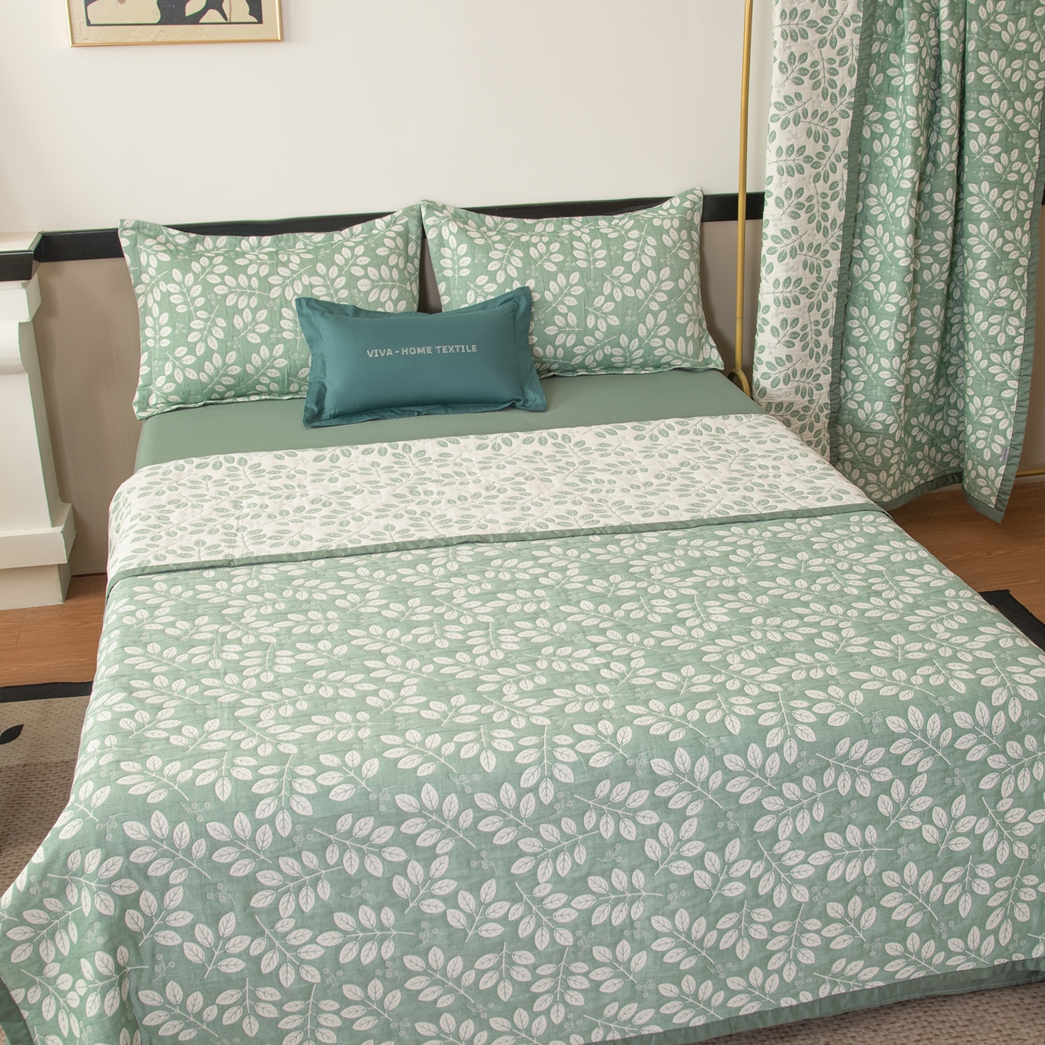 Реверсивный дизайн покрывала с инверсией оттенков позволяет выбрать настроение пространства: на одной стороне - светлый фон с мягким контрастным рисунком, на другой - более тёмный фон со светлым узором. Игра фактур и тонов делает покрывало выразительным акцентом в интерьере и позволяет легко менять облик спальни.