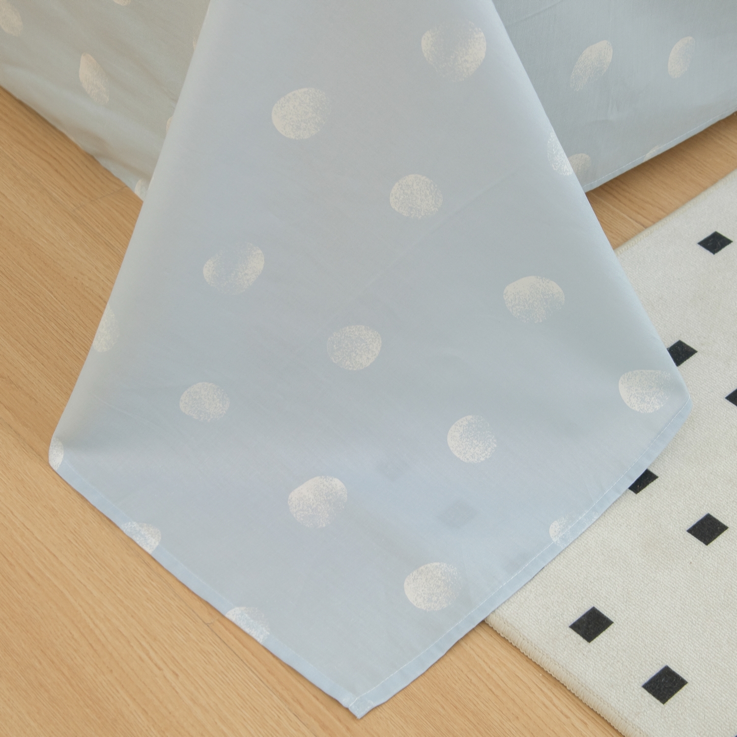 Ткань компаньон: Наволочка с разных сторон разной расцветки, одеяло-покрывало с разных сторон разного цвета с отстрочкой по периметру, простыня такого же цвета, как низ одеяла-покрывала.