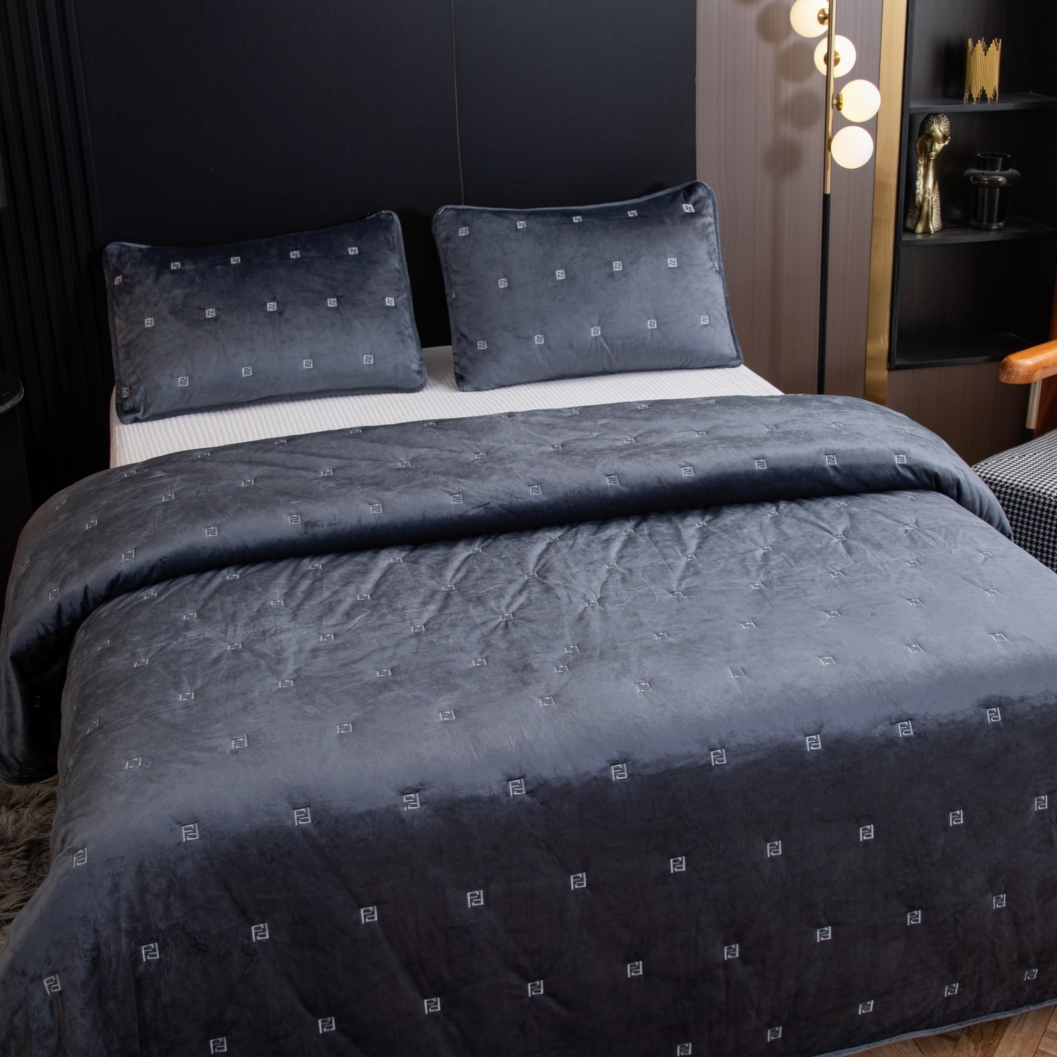 Велюровая текстура придает интерьеру особый шарм, а его высокое качество гарантирует долговечность и простоту ухода.