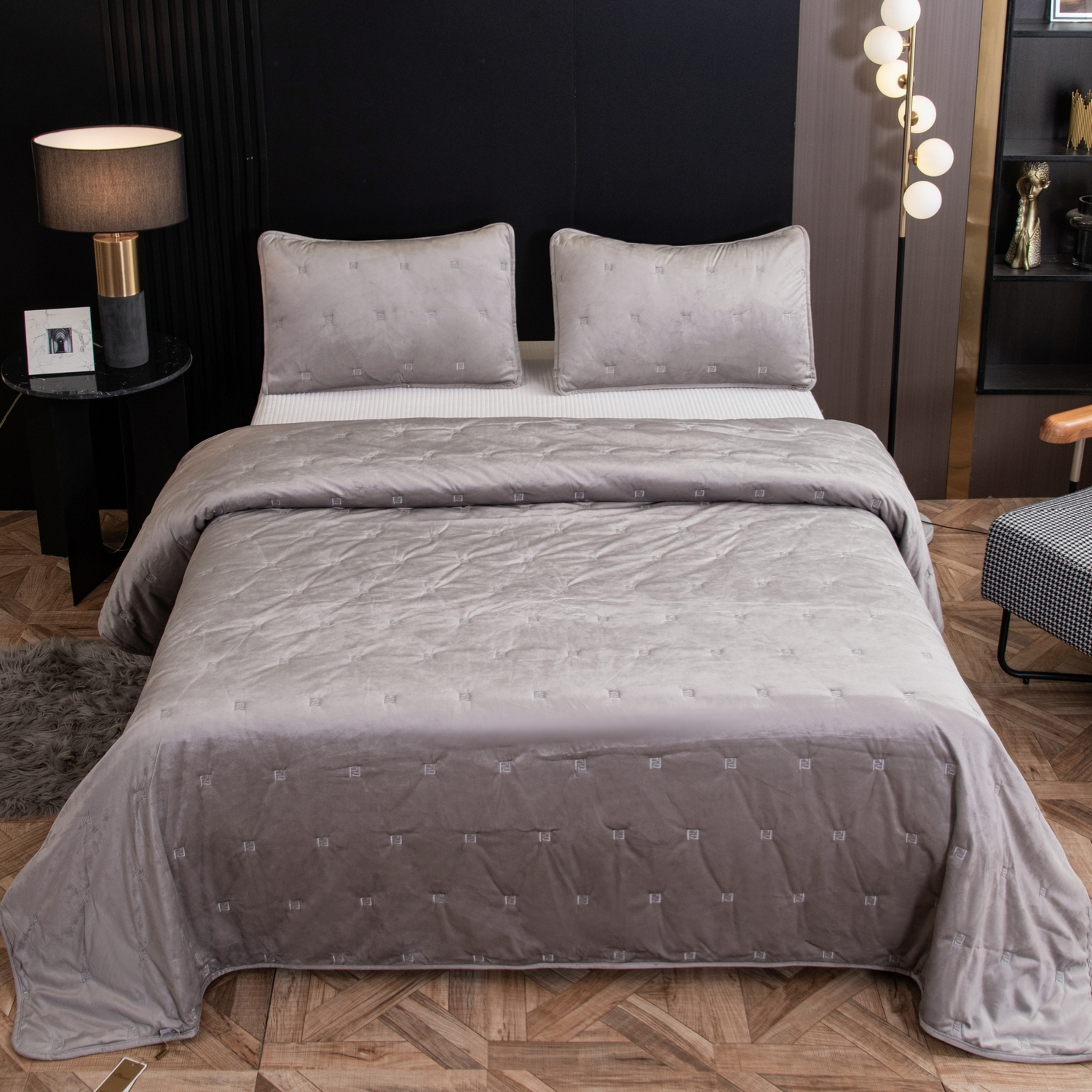 Велюровое покрывало Grande OVS013, размер 240*260, наволочки 50-70 2 шт