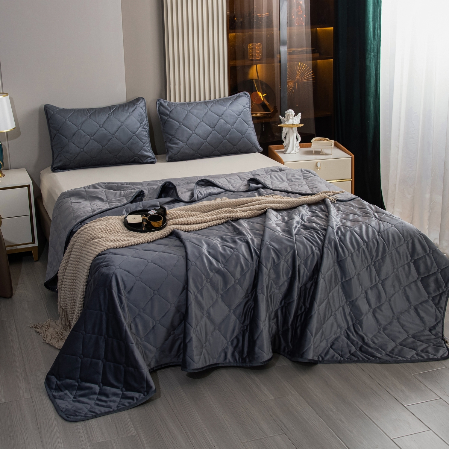Велюровое покрывало с ромбовидной стежкой: мягкая текстура велюра и приятная цветовая гамма станут прекрасным дополнением интерьера вашей спальни. Кровать с таким покрывалом будет выглядеть стильно и дорого.