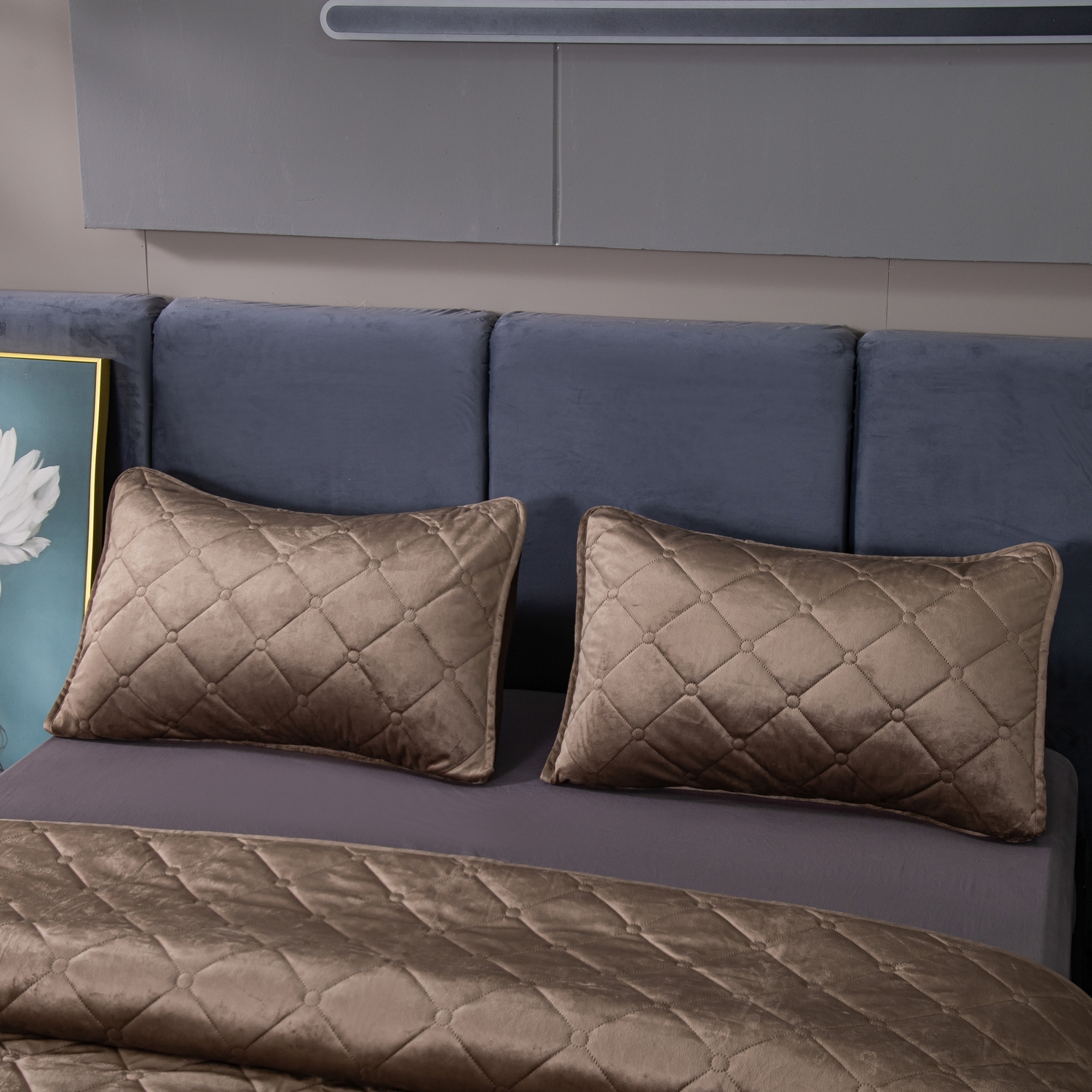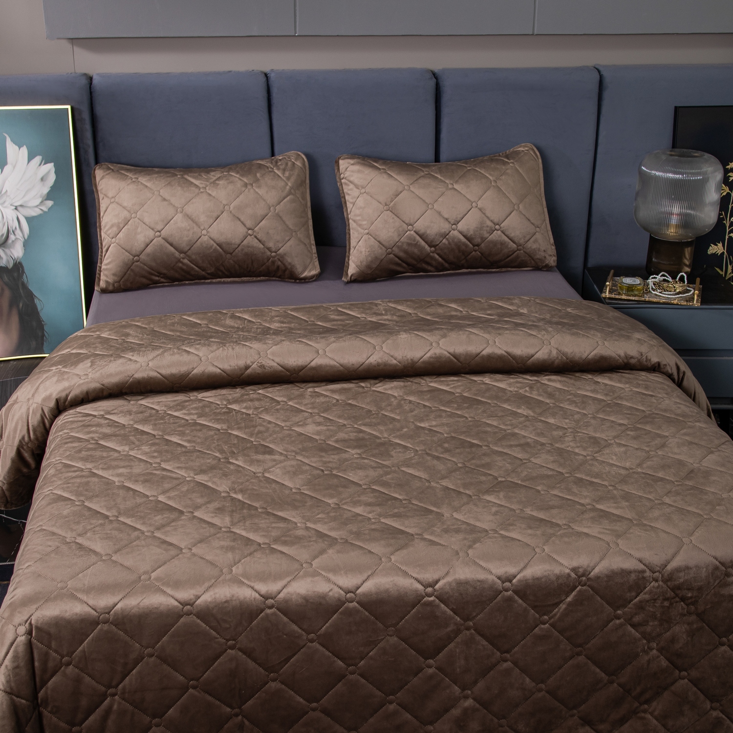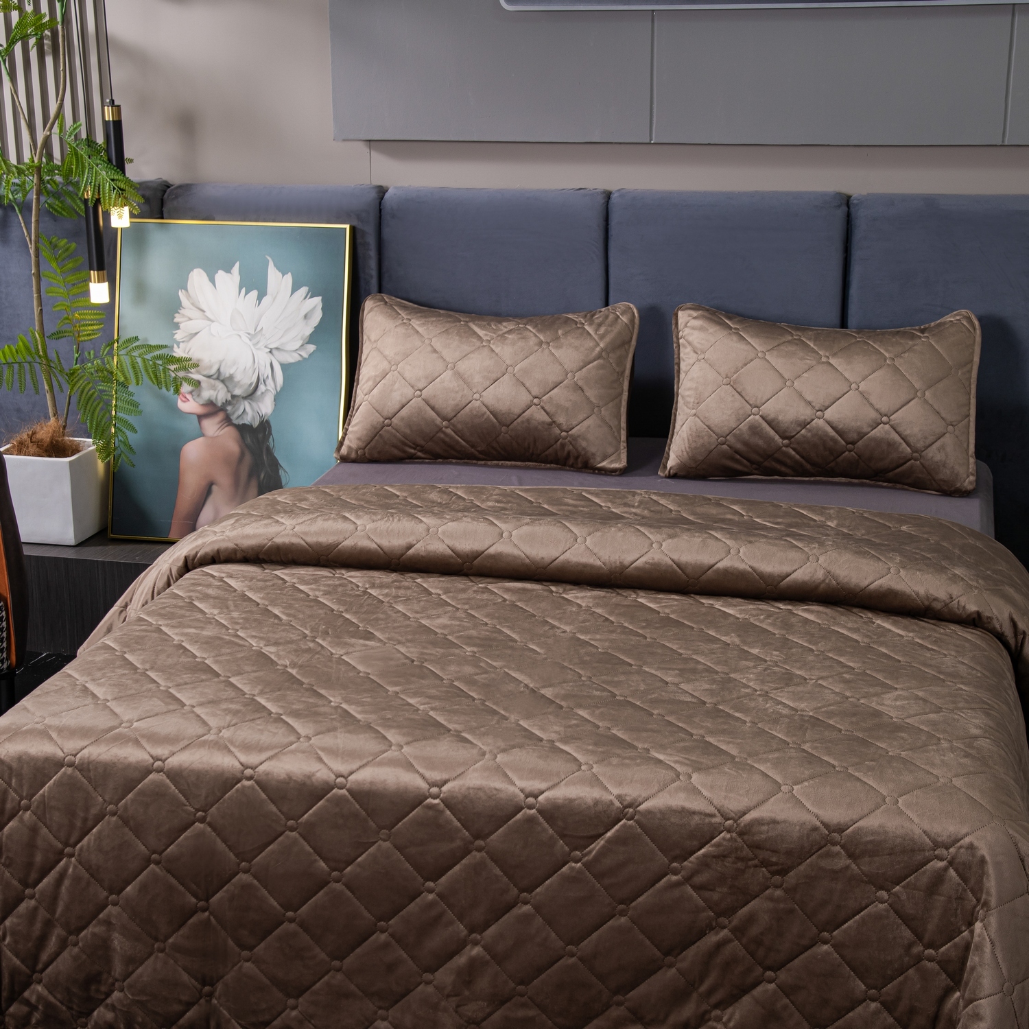 Велюровое покрывало с ромбовидной стежкой: мягкая текстура велюра и приятная цветовая гамма станут прекрасным дополнением интерьера вашей спальни. Кровать с таким покрывалом будет выглядеть стильно и дорого.