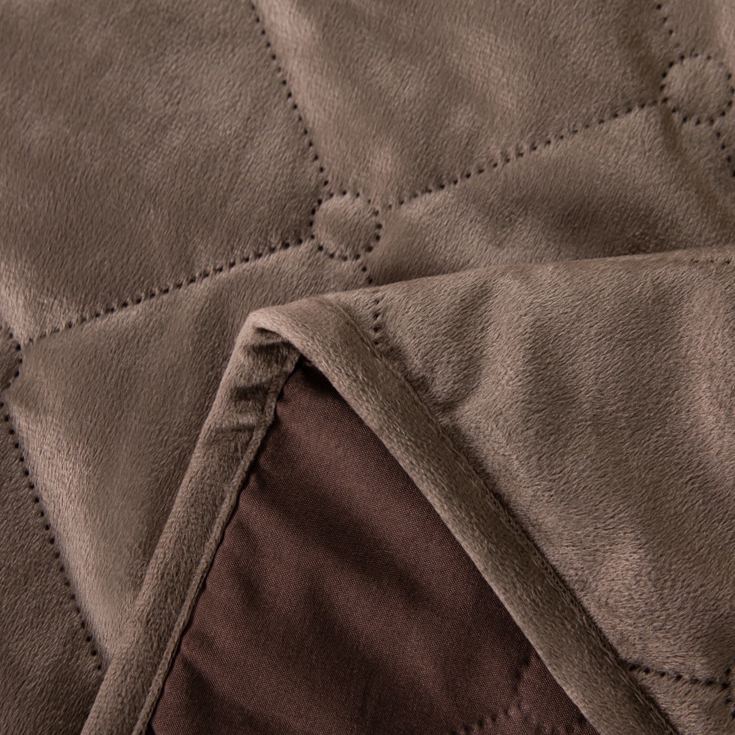 Покрывало украшено стежкой "Ромб" с металлизированной нитью, что подчеркнёт стиль постели и окружающего её пространства.