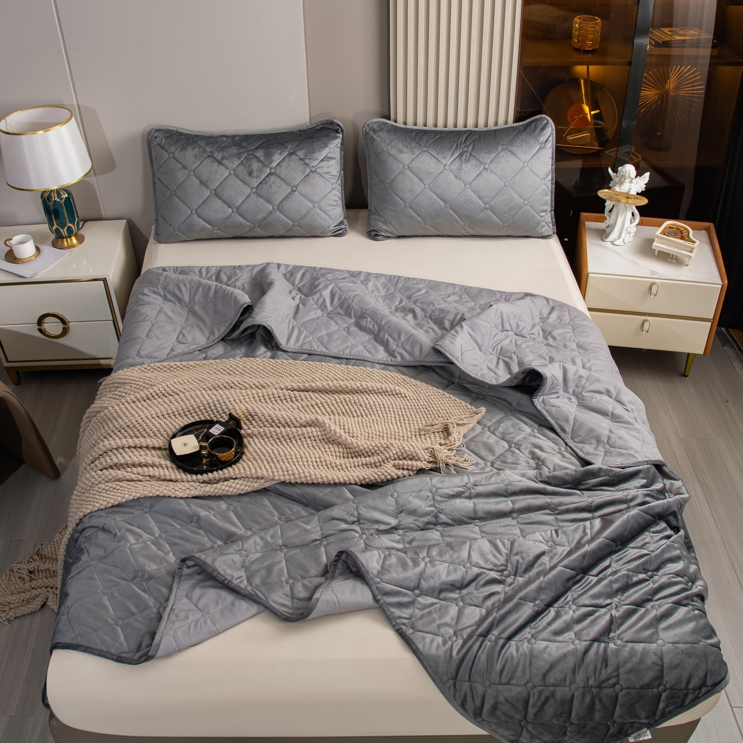 Велюровое покрывало с ромбовидной стежкой: мягкая текстура велюра и приятная цветовая гамма станут прекрасным дополнением интерьера вашей спальни. Кровать с таким покрывалом будет выглядеть стильно и дорого.