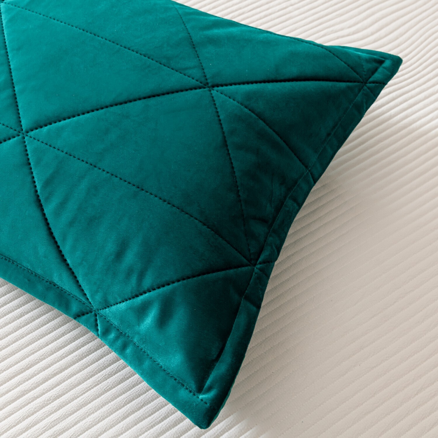Геометрический узор на покрывале выполнен с использованием термостежки, что придаёт изделию особую изысканность и подчёркивает элегантность интерьера.